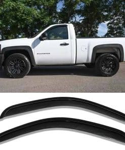 Las Viseras para Ventanas son el complemento perfecto para tu Chevrolet Silverado/GMC Sierra. Este juego de 2 piezas es específicamente diseñado para los modelos 07-13 y se adapta a los Silverado 2500 HD, Silverado 3500 HD, Sierra 1500, Sierra 2500 HD, y Sierra 3500 HD con estilo de carrocería Regular cab.