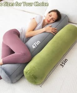 1 MIDDLE ONE Bolster Pillow for Bed es una almohada de cuerpo multiusos ideal para personas que buscan reducir la tensión en la cabeza, cuello, espina dorsal, caderas, rodillas y espalda. Esta almohada de tubo largo es perfecta para personas que duermen boca arriba y de lado, tanto para adultos como para adolescentes. Con medidas de 47 x 7.87 pulgadas, ocupa menos espacio en la cama que las almohadas corporales regulares, incluyendo un inserto de almohada y una funda de almohada de terciopelo.