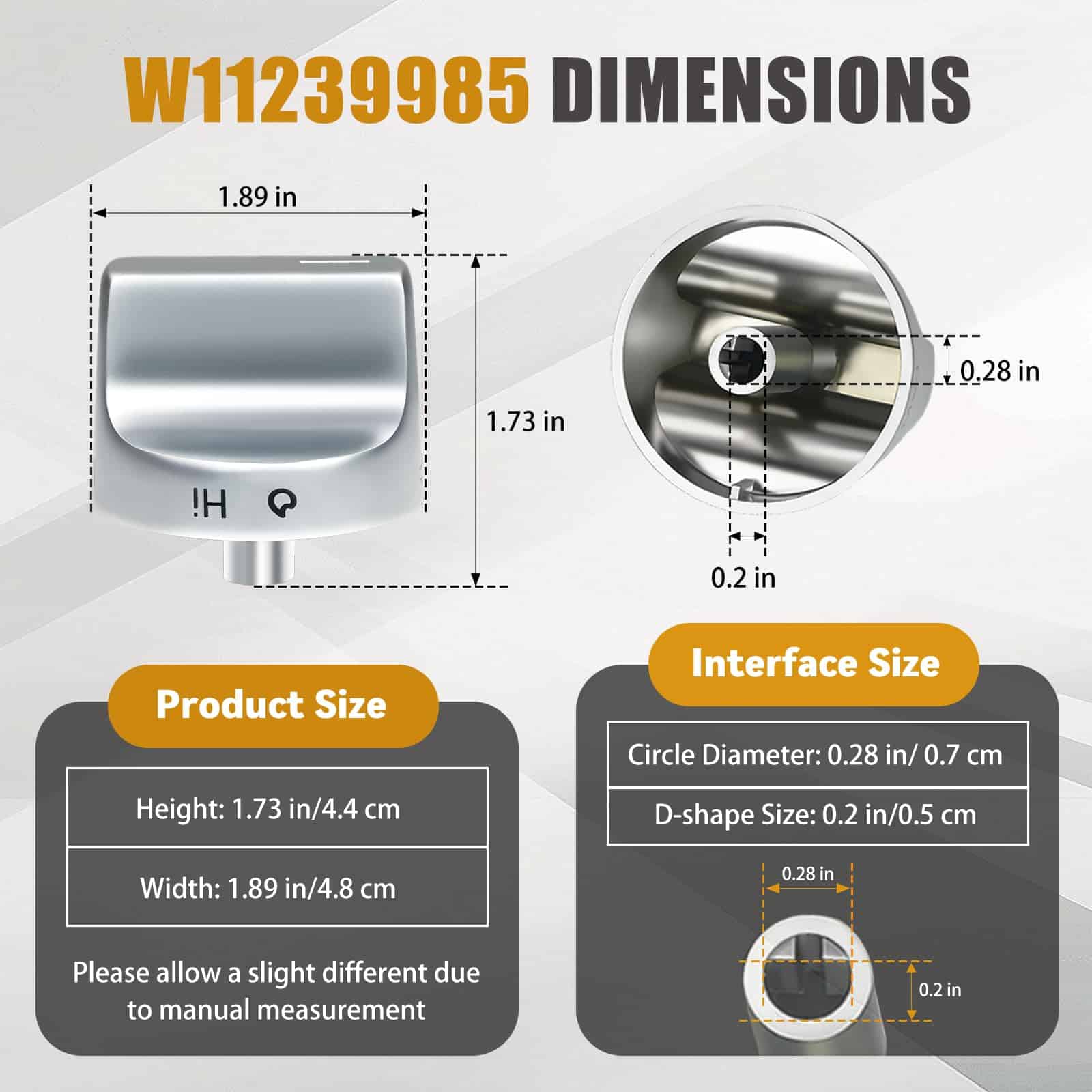 1. Reemplace los números de parte: La perilla de control de rangos de gas W11239985 puede reemplazar los números de parte – W11239985 4845290 PS12578779 EAP12578779 AP6333411; por favor confirme el número de parte de su rango de gas antes de la compra.