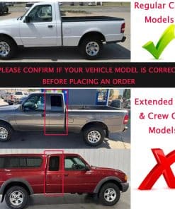 Ajuste para Ford Ranger 1998 1999 2000 2001 2002 2003 2004 2005 2006 2007 2008 2009 2010 2011 Número de Parte de Intercambio XL5Z-1051729-APTM ,XL5Z1051729APTM CECF-CARK1813-NPB XL5Z-1051728-APTM , XL5Z1051728APTM SOBRE ESTE ARTÍCULO ¡100% Nuevo, Gran Calidad a un Precio Decente! Hecho de Material de Plástico ABS Duradero y Ligero Ligero y duradero, resistente a altas temperaturas y corrosión Perfectamente adaptado a varios entornos adversos Mejora la Apariencia Aerodinámica y Deportiva a la Vez La Plantilla de Instalación NO está Incluida, Se Recomienda una Instalación Profesional