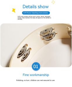 2. Use una mano para sacudir la pandereta o sostenga con una mano mientras golpea con la otra para crear un sonido nítido y claro. Los agarres especialmente formados y los bordes ligeramente curvados hacen que sean fáciles para los jóvenes tomar y aprender a tocar.