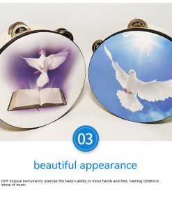 1 Pcs Pandereta Dove Bible Doble Fila Cascabeles Pandereta