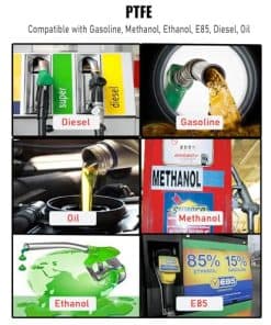 Descripción DETALLES DEL PRODUCTO Tipo de Manguera de Combustible: AN-10 (1/2″) Acero Inoxidable Trenzado PTFE (TEFLON) Diámetro Interno de la Manguera: 12.95mm (1/2″) Diámetro Externo: 19.2mm (3/4″) Condición: Nuevo. Nunca ha sido usado o instalado Clasificación de Presión: 1000 PSI de Trabajo / 5000 PSI de Ruptura Clasificación de Temperatura: -100F a 500F (-73 C a + 260 C) bajo la mayoría de las condiciones de operación Aplicación: combustible, lubricante, alcohol, etanol, refrigerante y aire para automóviles o motores marinos, más adecuado para coches de carreras y motos de carreras. Nota: Si ordenas más de 1, te enviaremos una longitud continua de manguera CARACTERÍSTICAS DEL PRODUCTO Esta Manguera de Combustible de Acero Inoxidable Trenzado está especialmente diseñada para funcionar en cualquier proyecto automotriz. Esta manguera te ofrece niveles inigualables de rendimiento y fiabilidad para tus aplicaciones de alto rendimiento. Esta manguera es ideal para altas temperaturas, alta presión y ofrece una amplia gama de compatibilidad con fluidos. Esta manguera está hecha de Poliuretano de alta calidad en el interior que le confiere alta resistencia química y térmica, junto con un exterior de acero inoxidable trenzado que le proporciona alta durabilidad, resistencia a la presión extrema y una apariencia profesional y tecnológica. Son de paso suave para un flujo óptimo.
