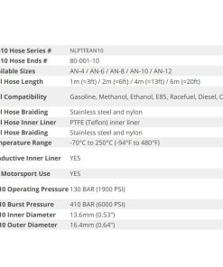 Esta manguera de combustible de nylon trenzado negro está especialmente diseñada para trabajar en cualquier proyecto automotriz. Esta manguera le proporciona niveles de rendimiento y confiabilidad inigualables para sus duras aplicaciones de alto rendimiento. Esta manguera es ideal para alta temperatura, alta presión, y ofrece una amplia gama de fluídos. Esta manguera está hecha de poliuretano de alta calidad en el interior que le brinda alta resistencia química y térmica, junto con un exterior de nylon negro trenzado que le brinda alta durabilidad, resistencia extrema a la presión y una apariencia profesional y tecnológica. Son de flujo óptimo. El Teflón es flexible y resistente y cuando se combina con una trenza de acero inoxidable puede funcionar bajo condiciones de alta presión y flexión continua y vibración.