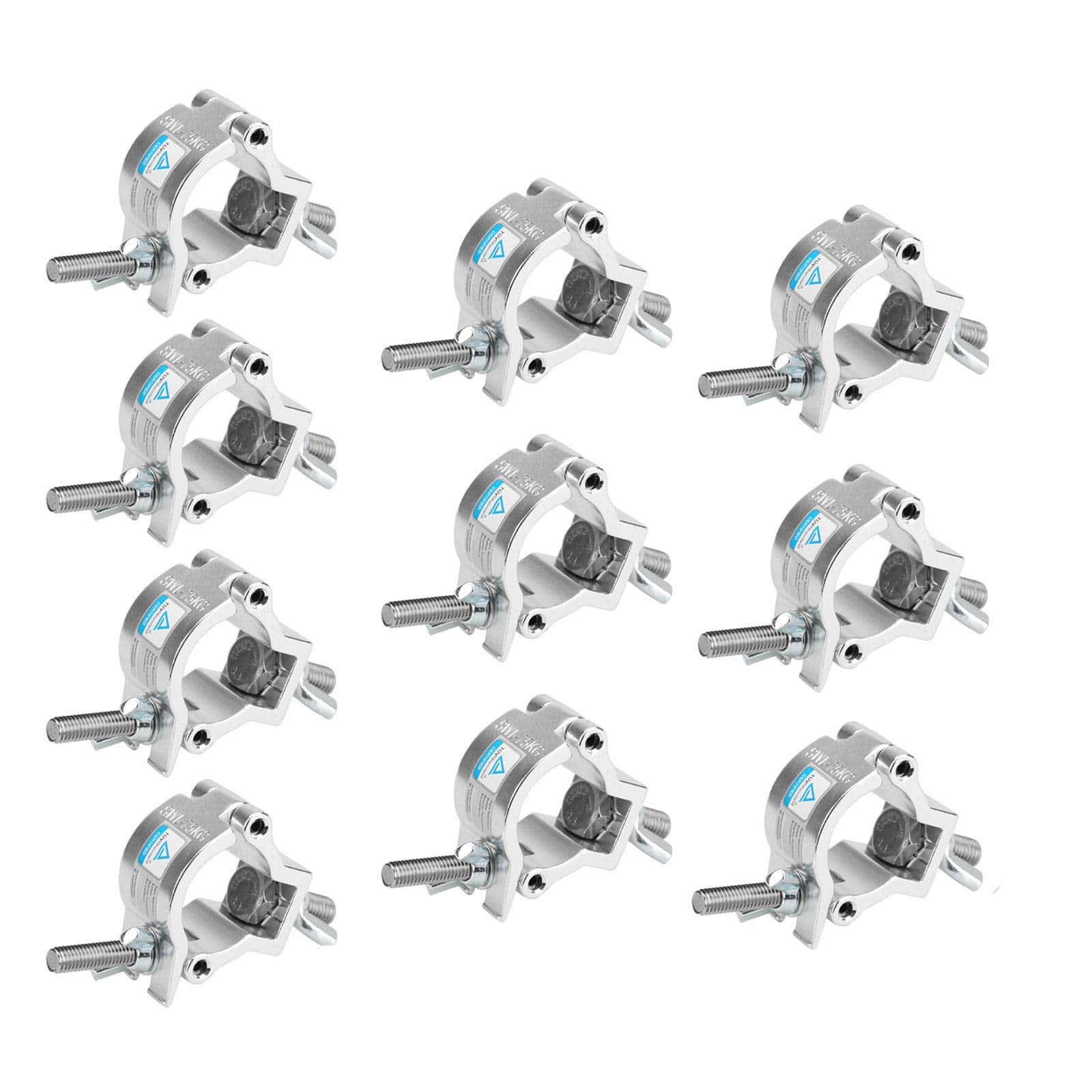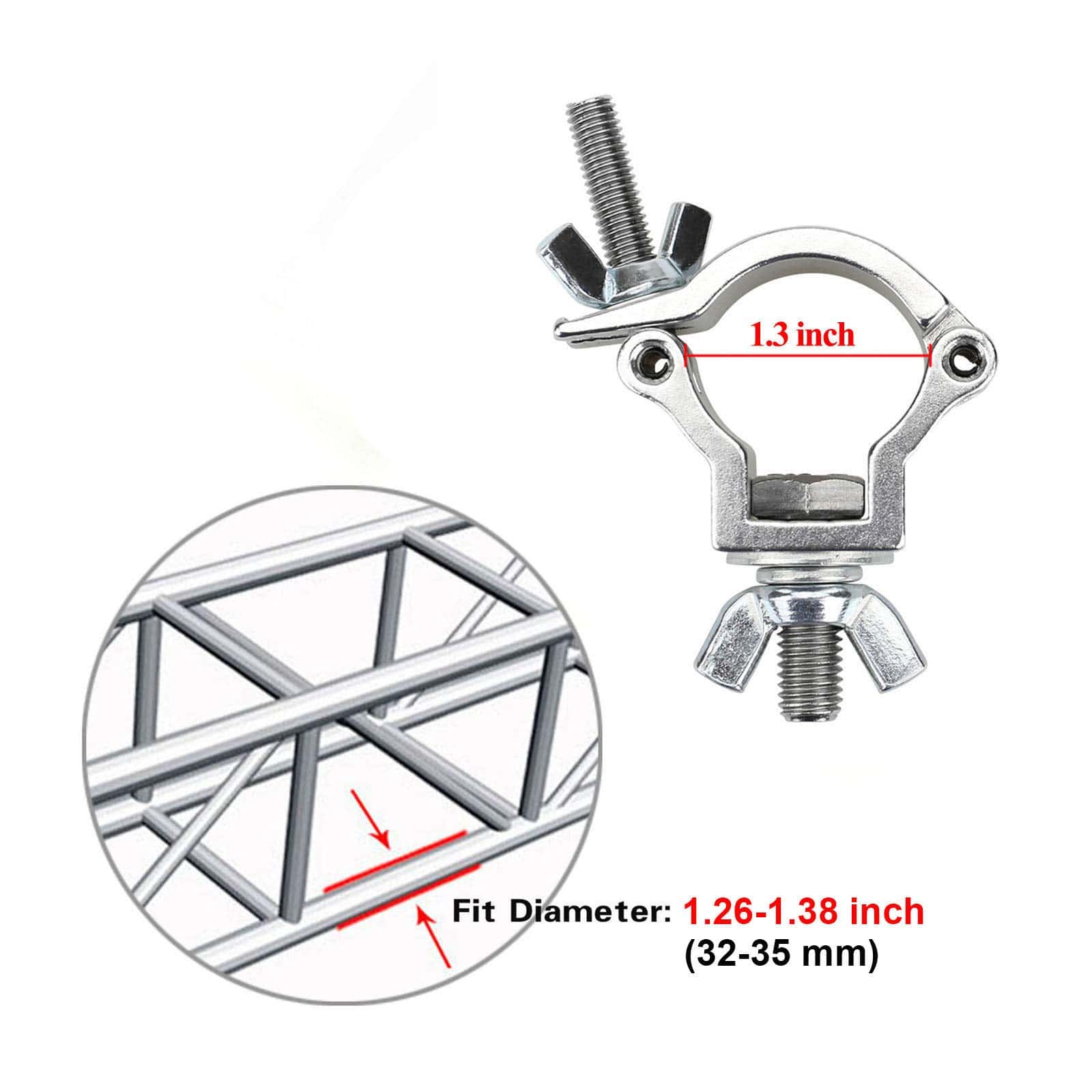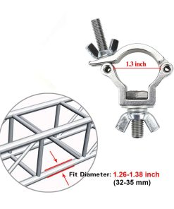 b Características: br/ br/ – Certificado por TUV Rheinland br/ – Límite de peso: 165 libras br/ – Abrazadera de 360 grados que envuelve el truss br/ – Material de aleación de aluminio br/ – Seguridad y estabilidad br/ br/ b Especificaciones: br/ br/ – Material: Aleación de aluminio br/ – Diámetro del Tubo: 32-35mm ajuste truss F24 br/ – Perno Roscado: 9.6mm br/ – Ancho: 30mm br/ – Capacidad de Carga: 1 – 75kg / 1 – 165lb br/ – Tamaño: 10 6.5 3cm / 3.9 2.5 1.1 pulgadas br/ – Peso Bruto: 134g br/ br/ b Notas: br/ br/ – Realice una prueba de capacidad de carga máxima antes de usar br/ – Esta es una abrazadera pequeña, por favor mida su tubo antes de comprar. br/ br/ b Paquete Incluido: br/ br/ 10 x Abrazadera de Luz de Escenario