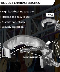 10 Pack Abrazadera de Truss 1.18-2 Pulgadas Gancho de Abrazadera de Luz de Escenario, Ajuste para Tubo/Pipa de 30-50mm de OD, Abrazadera de C Aleación de Aluminio para Luces de DJ, Luces Par, Luces Puntual, Capacidad de Carga 55LB