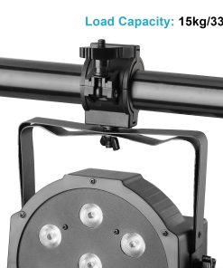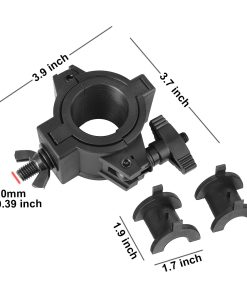 Especificaciones: – Material: ABS – Ajuste de Diámetro de Tubería: 25mm(F14) 36mm(F24) 48mm(F34) – Perno Roscado: 10mm – Capacidad de Carga: 1 – 15kg / 1 – 33lb – Tamaño: 3.9 x 3.7 pulgadas – Peso Bruto: 460g Notas: – Realice una prueba de capacidad de carga máxima antes de usar Paquete Incluido: 10 x Abrazaderas de Luz de Escenario