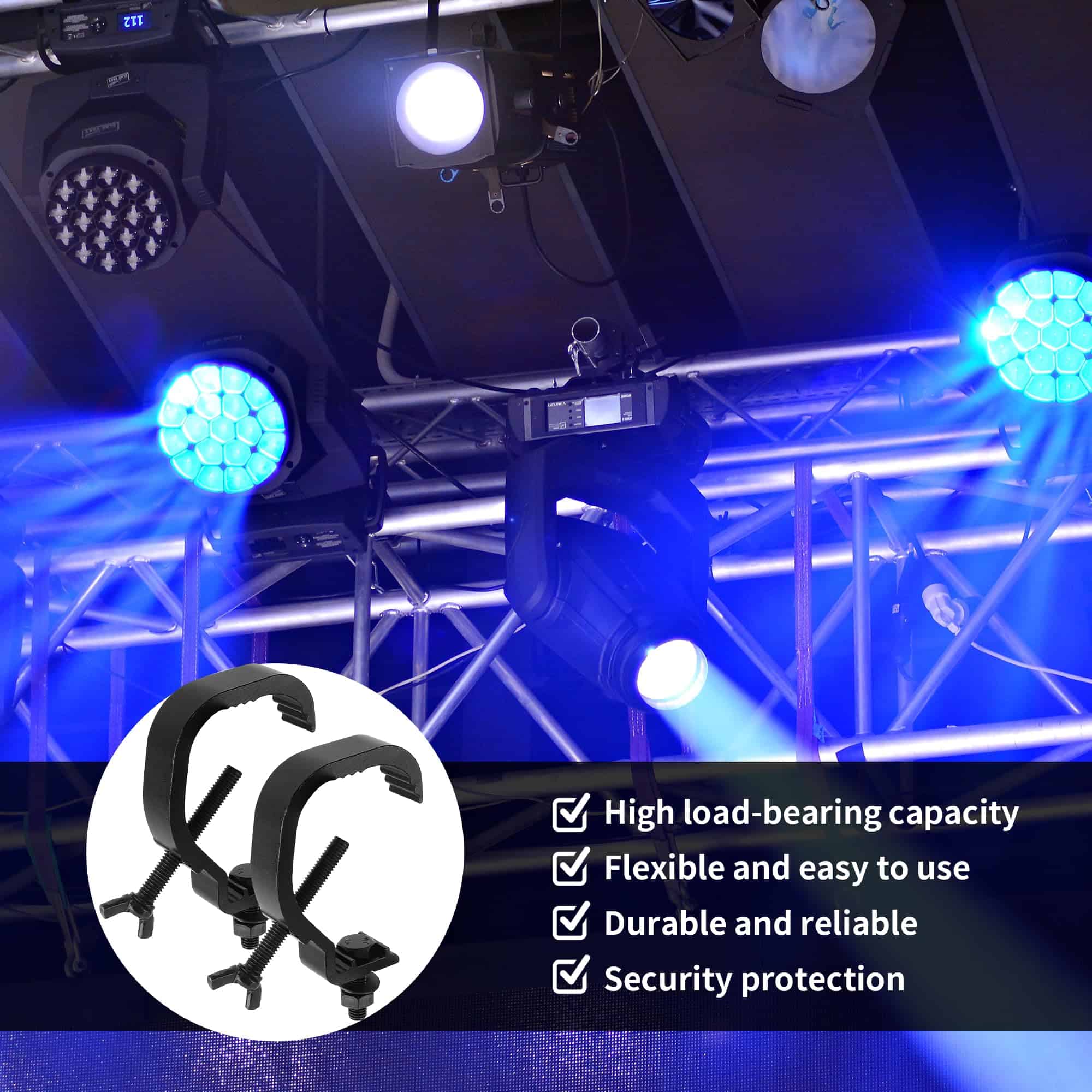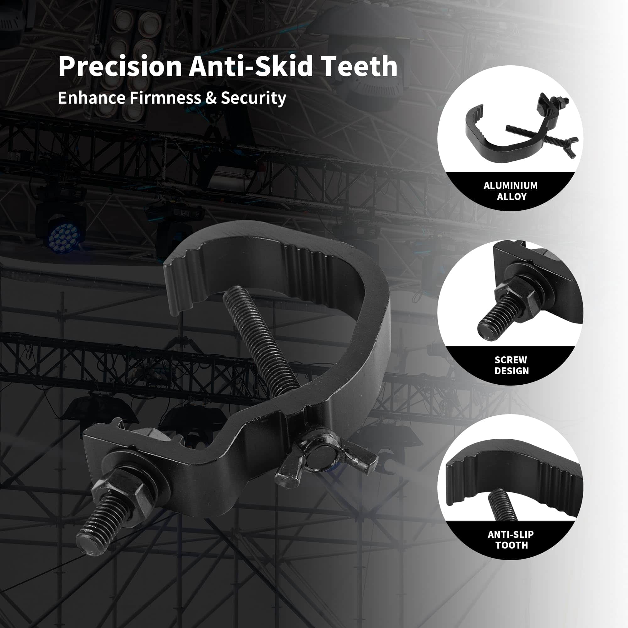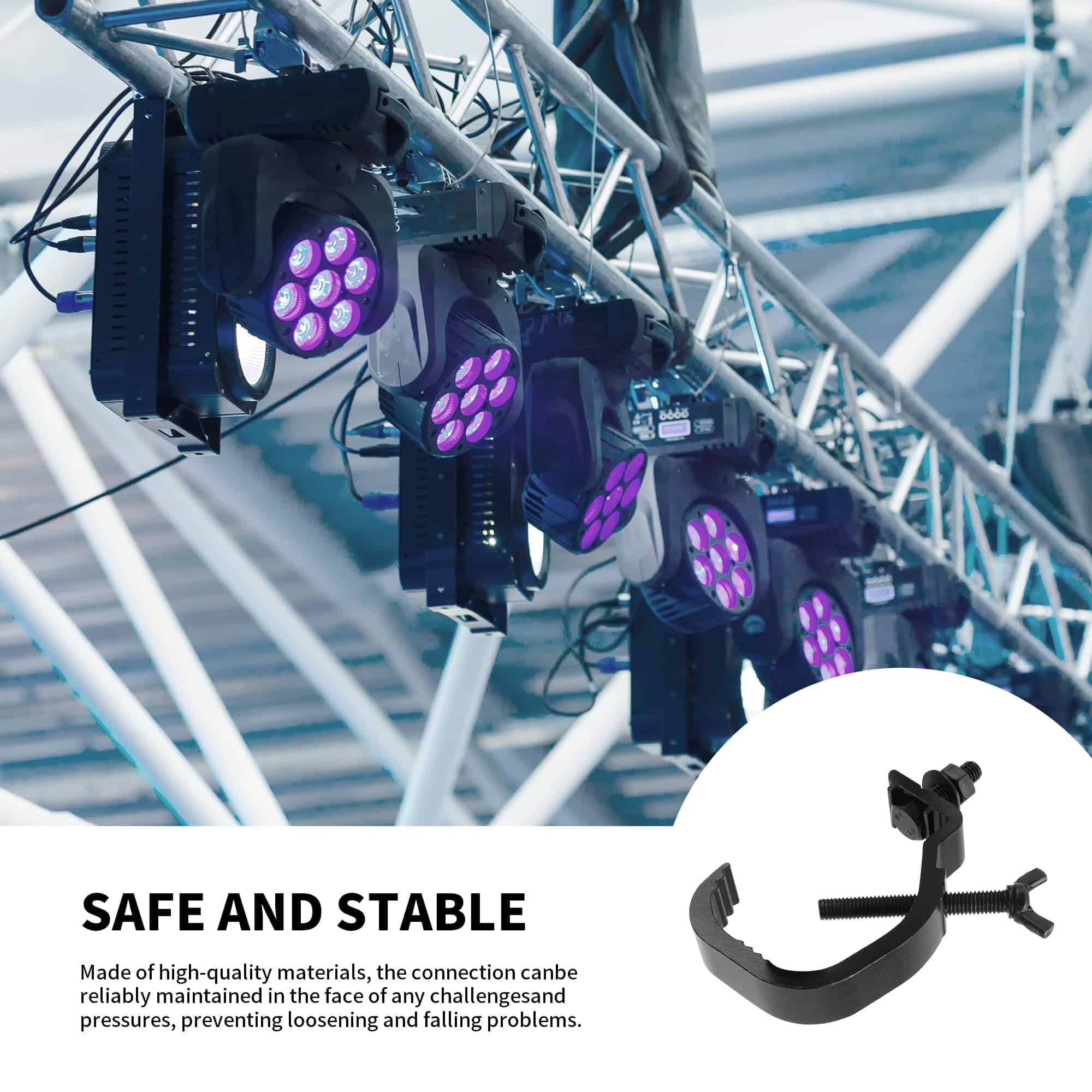 -Las abrazaderas de truss de iluminación están diseñadas con dientes antideslizantes para fortalecer la fijación entre las abrazaderas y los accesorios, lo que las hace más sólidas y seguras.