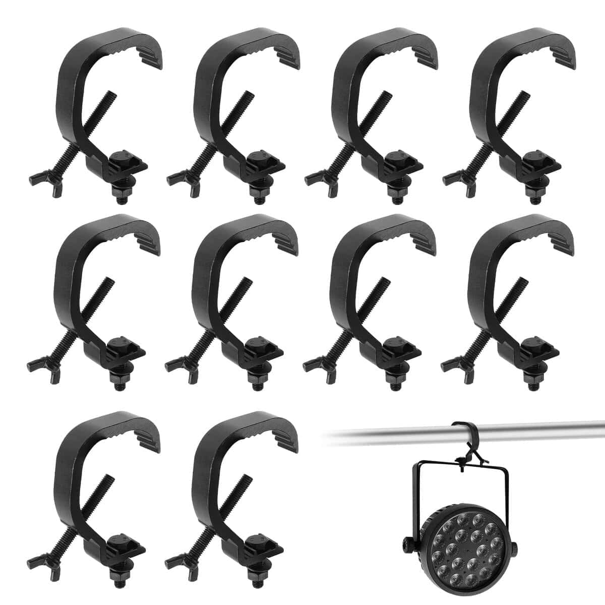 Paquete de 10 abrazaderas de Truss Negras 1.18-2.16 Pulgadas, Gancho de Abrazadera de Luces de Escenario, Ajuste para Tubos de 30-50 mm de diámetro exterior, Abrazadera de Aleación de Aluminio para Luces DJ, Capacidad de Carga 55 LB.