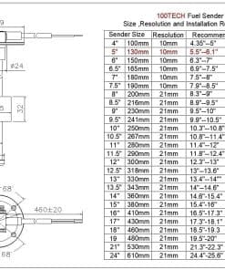 La Unidad de Envío de Combustible 100TECH y el Kit de Medidor de Combustible están diseñados para aquellos que buscan una solución simple para medir la cantidad de nivel de combustible/gasolina en el tanque. Pedir un conjunto que tenga tanto el medidor como el sensor para evitar problemas de compatibilidad. Hay tantos diferentes sensores y medidores en nuestra tienda, ¿cuáles son las características y beneficios de las unidades y medidores de 100TECH? 1. El Sensor de Combustible de 100TECH está hecho con el OKI Reed Switch (importado de Japón), más confiable y duradero. 2. La resolución de la Unidad de Envío de Combustible 100TECH para Barcos de 4, 5, 5.5, 6, 7, 7.5 es de 10 mm. 3. La varilla, la junta de corcho y los tornillos de montaje de la Unidad de Envío de Combustible de Tanque de 100TECH están hechos de acero inoxidable 316 para garantizar un rendimiento confiable y una larga vida útil. Otros: 1. La resolución del Sensor 4, 5, 5.5, 6, 7, 7.5 es de 21 mm. Falta de resolución, la caída al vacío es muy pronunciada, el tanque parece estar al 1/4 cuando en realidad está al 1/8. 2. El cuerpo del Sensor está hecho con acero inoxidable 304. El 304 se oxida más rápido ya que tiene menos níquel y no tiene molibdeno. Temperatura operativa: -40 F ~ +85 F (-40 C ~ +85 C). Información adicional: Información del paquete: 1 x Sensor de Combustible 100TECH 1 x Medidor de Combustible 100TECH 1 x Junta 5 x Tornillos M5 de 0.8 de longitud (16 mm) 4 x Terminales de Cableado Rápido 1 x Guía de Instalación de la Unidad de Envío