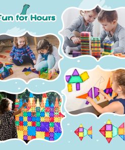 Advanced Set of 102PCS Total Package includes 102 magnetic blocks, an idea booklet and a storage bag, no pure plastic piece. Refill your existing magnetic blocks or even building blocks of other brand to expand model opinions. More pieces, more possibilities. Safe Play Sensory Toys Well made with toxin-free materials and have a rounded-edge design. So they�re very safe for kids to play with and suitable for multiple age groups of different learning needs, especially friendly to kids with ADHD / ASDs. Kids under 3 years need to be always supervised to avoid choking issues and also more involved in helping them build magnetic shapes and structures. Magnetic Building Brilliance Different with other traditional building toys which are easy to fall down, our magnetic blocks are easily to build and hold with strong magnets. Your kid will definitely be cheerful when he or she surely know I made it by finished construction models. Great way to excites kids� creative imagination and build self-confidence. Learning with Creative Fun Attractive transparent rainbow magnet toy set is designed as educational toys to help build kid’s sense of creativity and get better understanding of color, geometrical shapes and develop motor skills and creative thinking. Great for spacial reasoning, architecture, STEM and STEAM. Perfect Boredom Busters & Memory Makers Keep these magnetic building tiles in your special boredom buster cabinet. Every time your toddler say I’m bored , take them out and then he/she will pick an STEM activity to do for hours. We highly recommend parent-to-kid bonding play on weekends.