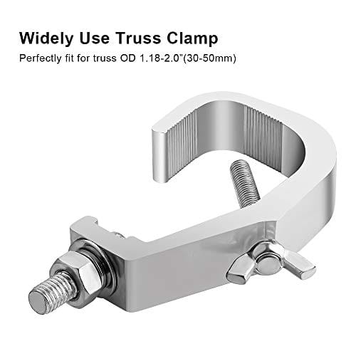 3. Ajuste de Tamaños de Tubo: Esta es una abrazadera de truss de uso general, que se ajusta a tubos o tuberías de 1.18 a 2.0 pulgadas (30-50mm), abrazaderas de alta resistencia con capacidad máxima de carga de 110 lb / 50 kg.