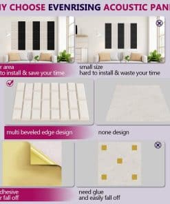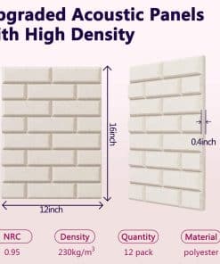 Este pack de 12 paneles acústicos de 16X12X0.4 pulgadas ofrecen una solución efectiva para mejorar la calidad del sonido en tu entorno. Con un área de absorción de sonido ampliada, estos paneles brindan una cobertura superior que ayuda a dispersar el ruido no deseado y eliminar ecos molestos. Fabricados en 100% fibra de poliéster, estos paneles son seguros, sin olor y retardantes de llama de clase B1, lo que los hace ideales para proporcionar un entorno acústico mejorado sin riesgos para la salud. Además, su diseño autoadhesivo facilita la instalación en una variedad de superficies, incluidas paredes, techos y puertas. Los paneles acústicos ayudan a reducir el sonido reflejado no deseado en cualquier habitación, mejorando la calidad acústica al reducir el ruido de fondo, los ecos, el tiempo de reverberación y las ondas estacionarias. Con una versatilidad excepcional, estos paneles son adecuados para una amplia gama de aplicaciones, desde estudios caseros y salas de conciertos hasta oficinas y salas de conferencias. Su diseño cortable permite adaptarlos a cualquier forma y tamaño deseado, lo que los convierte en la opción ideal para proyectos de bricolaje.
