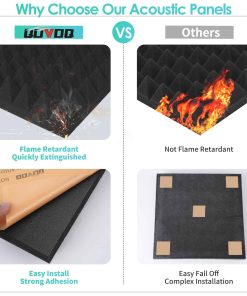 2. Material de Alta Calidad: Los paneles de insonorización de pared están hechos de material de espuma de poliuretano, que es inodoro, elástico, duradero, ignífugo y eficiente, puede garantizar la seguridad de cualquier uso en casa o en el estudio. Densidad 35kg/cbm, pasa los requisitos de retardante de llama. Crea el entorno ideal para la grabación de música o el trabajo silencioso.