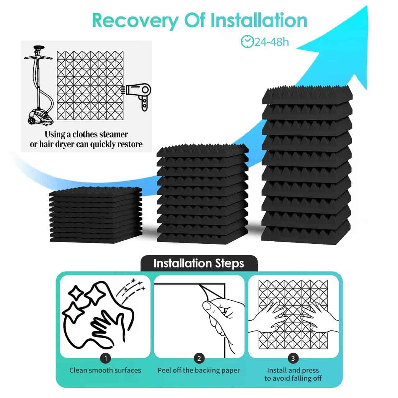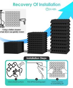4. Fácil de Instalar: Este espuma de pared para estudio tiene cinta autoadhesiva en la parte posterior, que puede pegarse fácilmente a superficies lisas y planas. Los paneles de espuma acústica no solo reducen el ruido exterior, sino que también son excelentes decoraciones de pared. Son adecuados para estudios de grabación, salas vocales, salas de control, dormitorios y teatros en casa.