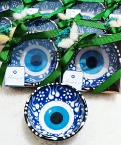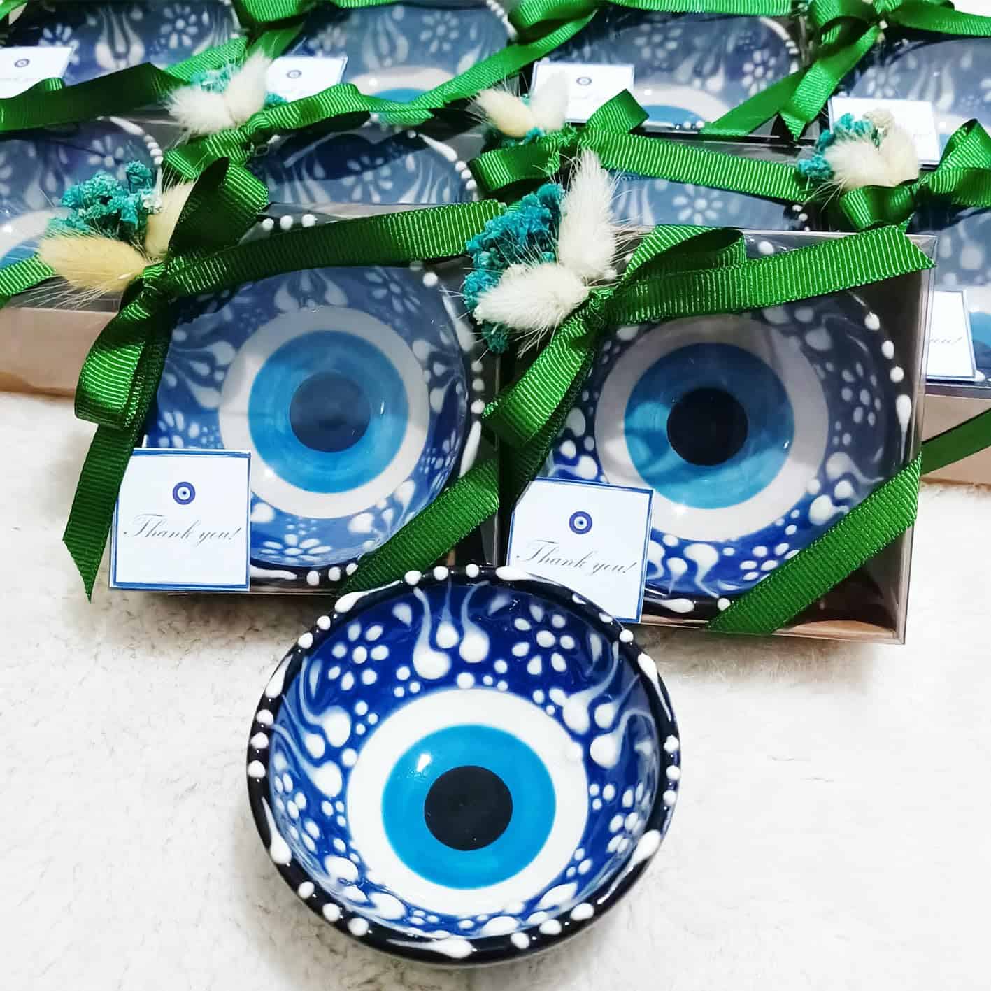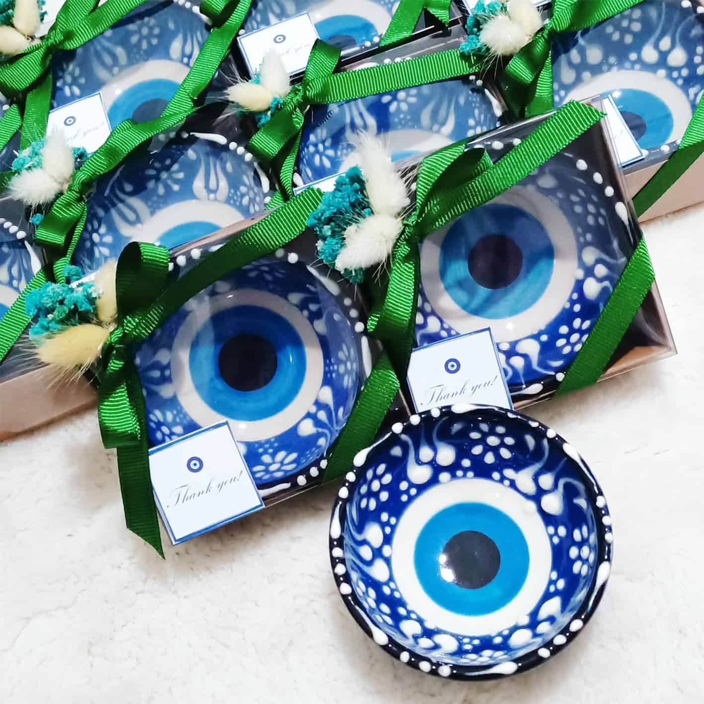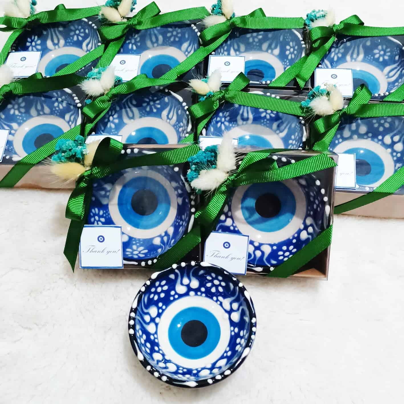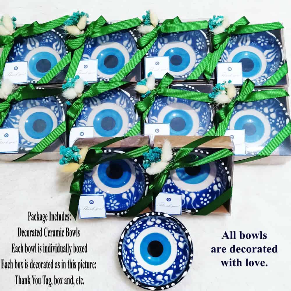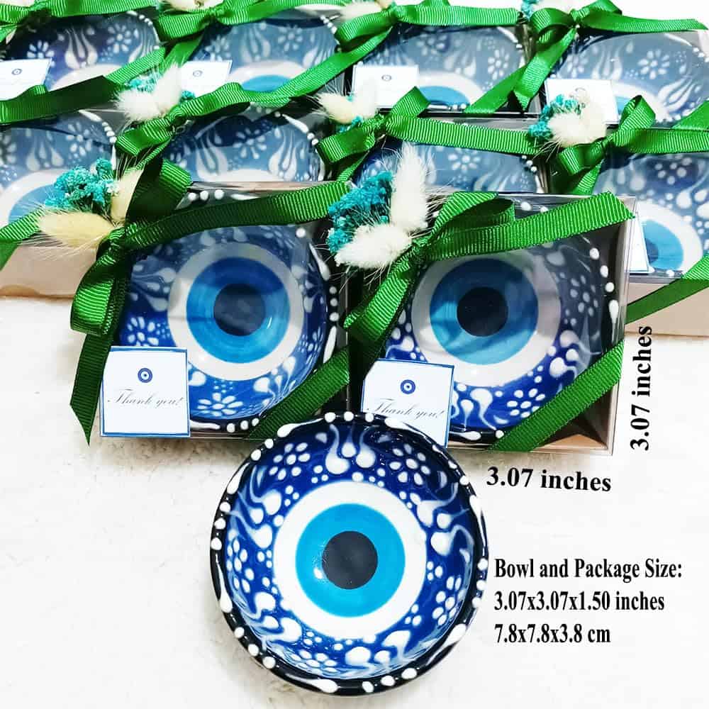 3. PAQUETE INCLUYE: Los cuencos de cerámica con ojo malvado están listos para sus invitados como producto terminado decorado. Todos los cuencos vendrán en cajas decoradas individualmente. Cada paquete incluye un llavero de osito de peluche como regalo.