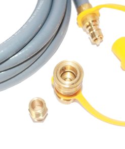 El adaptador convertidor de 1/2» macho de tipo llanta a 3/8» hembra de tipo llanta le permite usar la manguera para sus electrodomésticos de propano con conector macho de 3/8″.