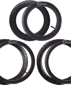 Neumáticos y Tubos de Repuesto para Carriolas: Se ajusta a la mayoría de las carriolas para bebés en el mercado con neumáticos de 16» en la parte delantera y 12,5» en la parte trasera, como Bob Revolution (PRO/Flex/SE), Graco FastAction Fold, Graco Click/Go Jogging, Baby trend Expedition, Burley Solstice Jogging Stroller, Joovy Zoom 360, ¡ajuste garantizado! AÑADE COMODIDAD AL PASEO DE TU BEBÉ: Con caucho butílico grueso que absorbe los impactos (4 veces más grueso que otras marcas), tu bebé no sentirá los baches y huecos porque la carriola se deslizará suavemente, protegiendo al pequeño del impacto. Eso sí es comodidad. LA SEGURIDAD PRIMERO ES NUESTRO LEMA: Diseñamos este tubo interno para ser de ALTA RESISTENCIA. Cuando y si se perfora, crea inmediatamente un sello hermético para prevenir daños, destrucción y lesiones al pasajero. Seguro en cualquier temporada o condición climática. FABRICADOS DE ALTA RESISTENCIA CON MATERIALES DE CALIDAD: Nuestros tubos internos están hechos de cauchos butílicos premium, 100% libres de BPA y olores, ¡es nuestra labor fabricar tubos internos confiables y duraderos y lo hacemos bien! ¡Confía en CalPalmy! SERVICIO AL CLIENTE BASADO EN LOS EE.UU: Respondemos cualquier pregunta o consulta en un plazo de 5 horas. ¿No estás contento con tu compra por algún motivo? No hay problema, nuestra política de devolución/cambio gratuita de 60 días garantiza que compres sin preocupaciones.