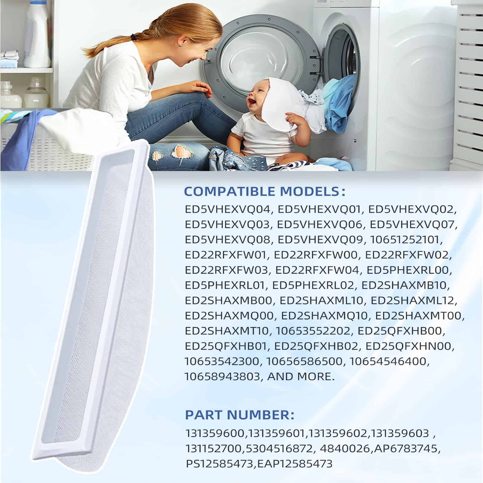 1. INCLUYE: Incluye 1 x 131359602 filtro de pelusa de secadora. Hazlo tú mismo y ahorra dinero del técnico de electrodomésticos.
