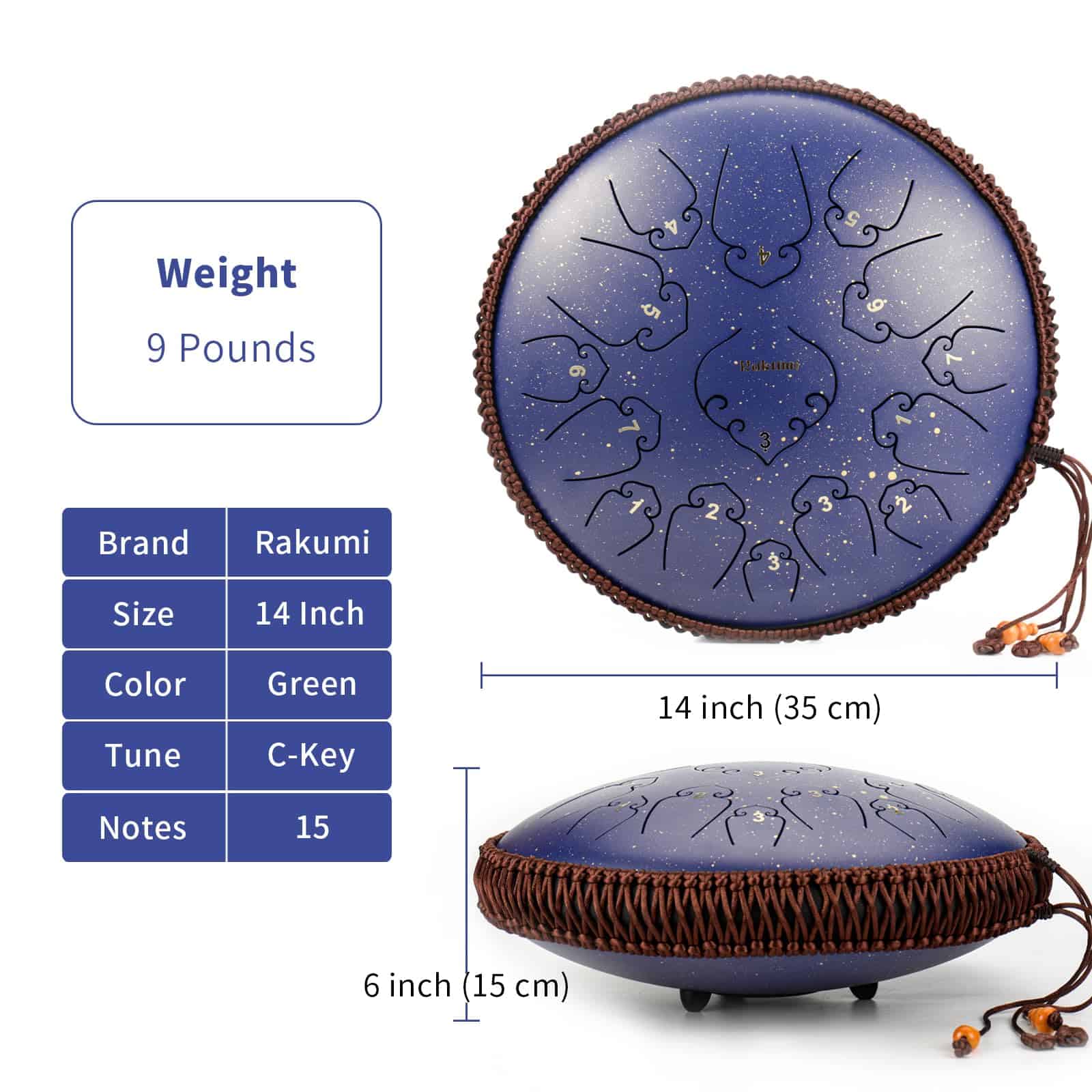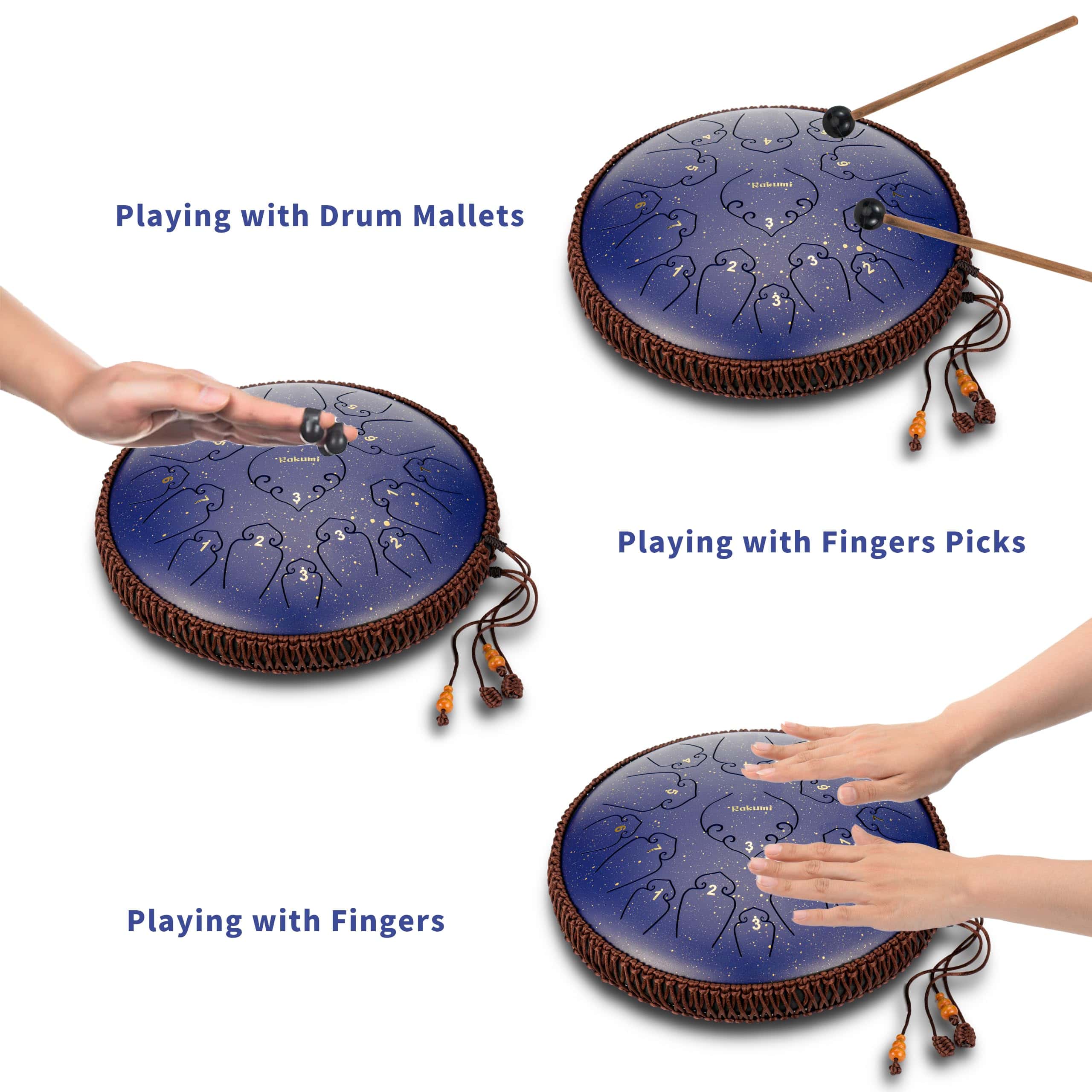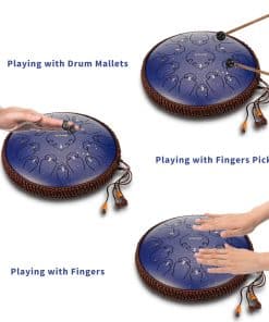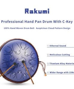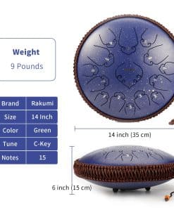 Disfruta del Sonido Etéreo del Tambor de Lengüeta de Acero Rakumi. Su sonido relajante ayudará a tu cuerpo y mente a relajarse llevándote a un estado de tranquilidad de día o de noche. Unir la atención plena y la percusión puede cambiar la vida. Incluso una sesión de meditación centrada en el ritmo de un tambor muestra lo poderosa y valiosa que puede ser esta antigua técnica de meditación en las vidas modernas estresantes. El ritmo poderoso y convincente de los tambores puede enfocar y calmar la mente, un camino rápido hacia la atención plena.