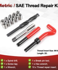Kit de Roscado Juego de Reparación de Rosca Herramienta de Reparación de Rosca M14x1.5 Kit de Insertos de Rosca M14 x 1,5 mm Kit de Reparación de Rosca Helicoil 9 Piezas Rosca Dañada Insertos de Rosca de Acero Inoxidable M14x1.5 Kit de Accesorios de Reparación de Roscas Femeninas
