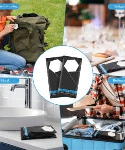 Cada paquete contiene 150 toallitas húmedas envueltas individualmente. Cada toallita desechable está sellada para garantizar limpieza al abrir. Amigable con la piel: Estas toallitas húmedas sin fragancia están hechas de algodón y pre-humedecidas con agua purificada RO, ofreciendo una experiencia suave y agradable para manos, cara y cuerpo. Uso versátil: Las toallitas pre-humedecidas son adecuadas para diversas ocasiones en hoteles, spas, restaurantes, baños, fiestas, bodas, cruceros, viajes por carretera, campamentos o actividades al aire libre. Dimensiones: Cada toallita húmeda mide 8.5 x 8.5 pulgadas (21.5 x 21.5 cm), mientras que la bolsa del paquete mide 6.49 x 2.75 pulgadas (16.5 x 7 cm). Un artículo imprescindible para viajar.