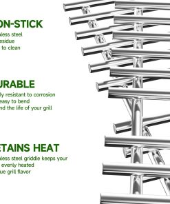 Rejillas de Parrilla de Acero Inoxidable para Parrillas Comerciales Charbroil Tru Infrared 463242715, 463242716, 463276016, 466242715, 466242716, 466242815, 466242816 2348749W01 Gas Grill, Lowe’s 606682, Lowe’s 639322, Walmart 555179228, Nexgrill 720-0882A 720-0882D, Members Mark 720-0830G. Números de Pieza Originales: CHRG533-0009-W1 G5330009W1 G533-0009-W1 CHRG533-0009-W1A G533-0009-W1A. También es compatible con otras marcas y modelos de parrillas. Hechas de acero inoxidable sólido para una cocción uniforme y fácil limpieza. Guardar en un lugar seco y seguro para prolongar su vida útil.