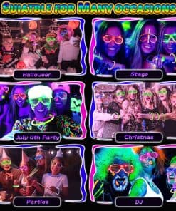 4. Diversión Infinita para Niños y Adultos: Los colores brillantes con luces parpadeantes son increíbles para adultos y niños. Adecuado para diversas fiestas glow como fiestas glow de Halloween/Navidad/Año Nuevo/Disco/Baile, También perfecto para actividades nocturnas, sirviendo como accesorios divertidos para acampar, accesorios de rave, accesorios de pista de baile de bodas y más.