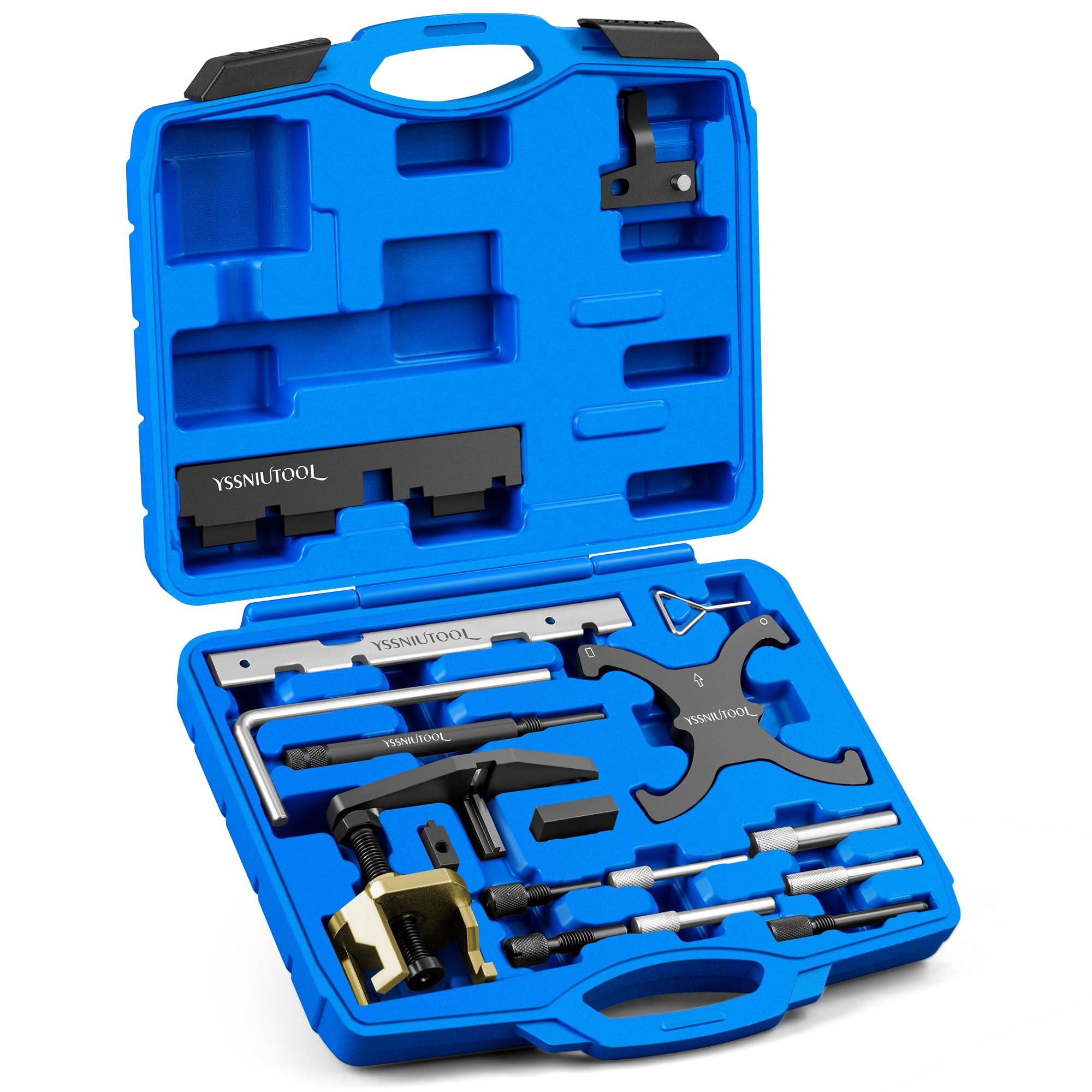 El Kit de Herramientas de Sincronización YSSNIUTOOL es compatible con una amplia gama de motores Ford Duratec y Duratorg, incluidos motores de gasolina 1.25, 1.4, 1.6, 1.7, 1.8 y 2.0 de doble árbol de levas 16V, motores de 2.3L, 2.5L, y motores diésel 1.4, 1.6, 1.8, 2.0 TDCI. También es compatible con motores Ford Ecoboost 1.6 Ti-VCT y 1.5/1.6 VVT, así como motores Mazda Psa 1.4, 1.6HDI, 1.8L, 2.0L, 2.3L. Con este kit de herramientas, podrá realizar ajustes precisos en el sistema de sincronización del motor de su vehículo de manera sencilla y eficiente.