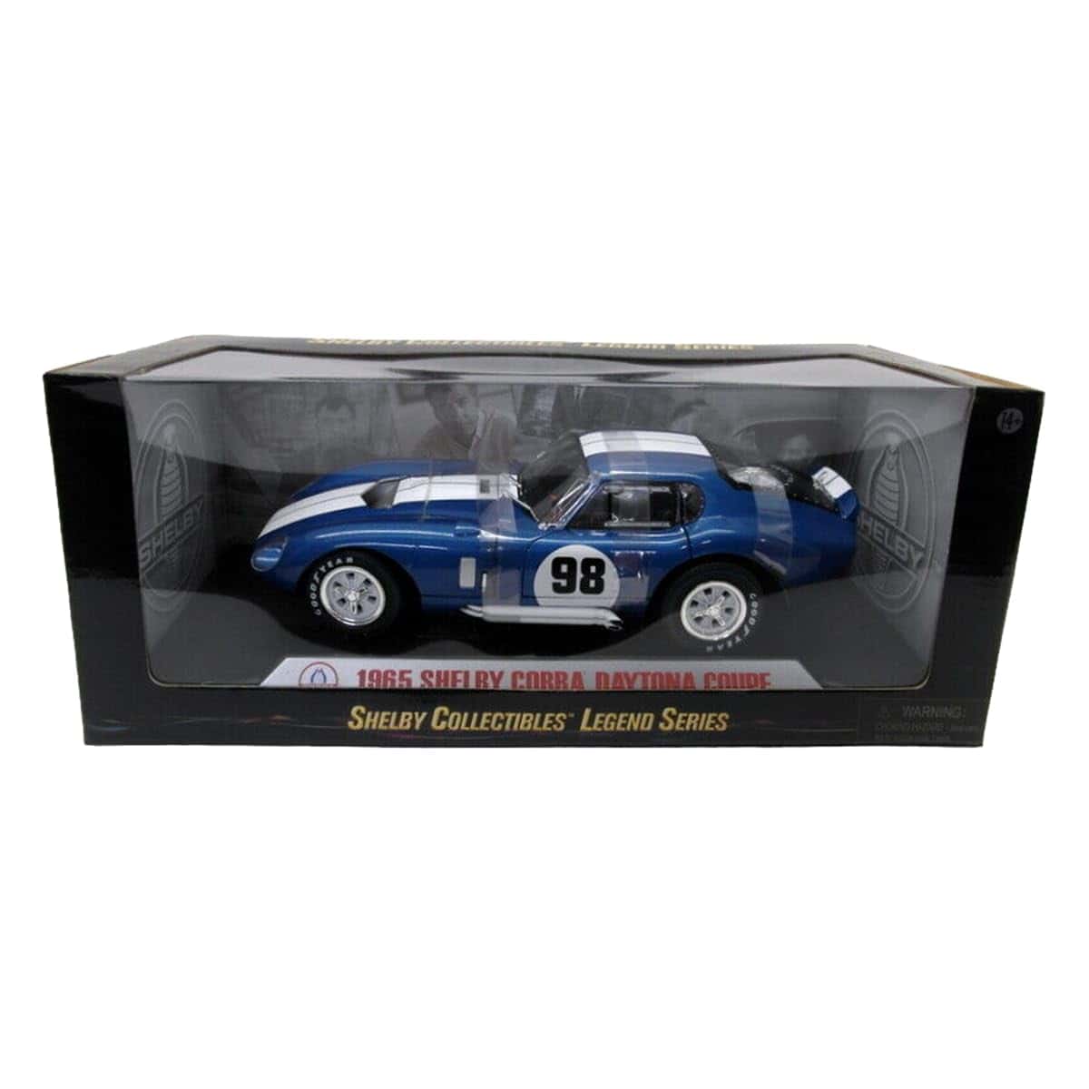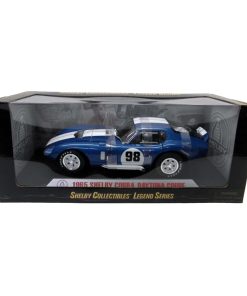 Haz tu propia historia con este increíble coche deportivo de los años sesenta. Este Shelby Cobra Daytona Coupe 98 de 1965 es una réplica a escala 1/18 de un modelo de diecast. Viene en color azul y cuenta con puertas, capó y maletero abribles, detallado motor, interior y chasis auténticos, accesorios cromados y neumáticos de PVC. Es un automóvil fantástico para cualquier colección de coches deportivos, ¡y un hallazgo impresionante para los fanáticos devotos de Shelby! — SC130 Shelby – Shelby Cobra Daytona Coupe Hard Top 98 de 1965 — Coche de colección de diecast a escala 1:18 — Montado en una plataforma de exhibición — Este Shelby Cobra Daytona mide 8.75″ de largo x 3.5″ de ancho x 2.25″ de alto — Puertas, capó y maletero abribles, detallado motor, interior y chasis auténticos, accesorios cromados y neumáticos de PVC — Empacado individualmente en una caja de ventana. Tamaño de la caja: 12.5″ de largo x 5.75″ de ancho x 5″ de alto — SC130 es de color AZUL con rayas blancas