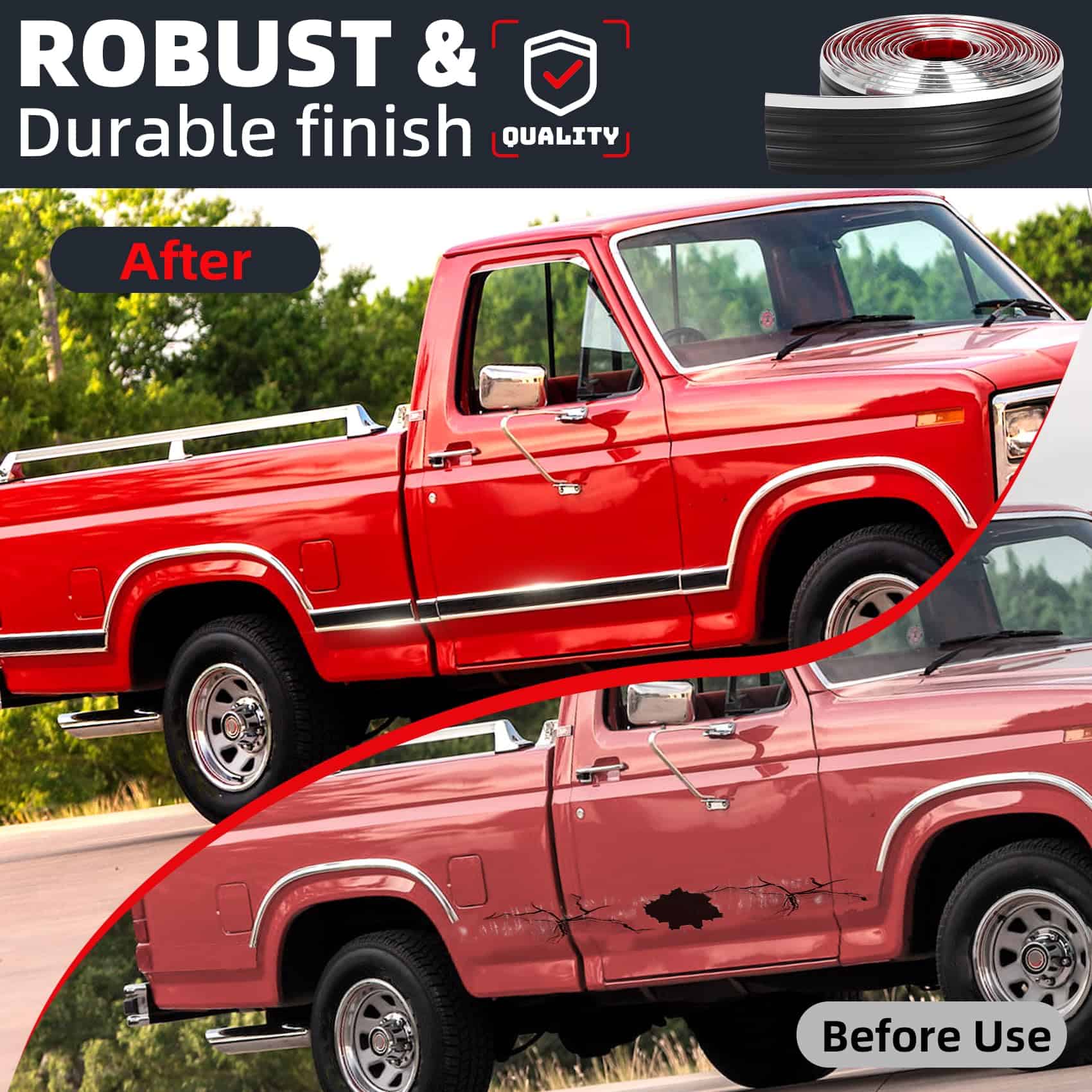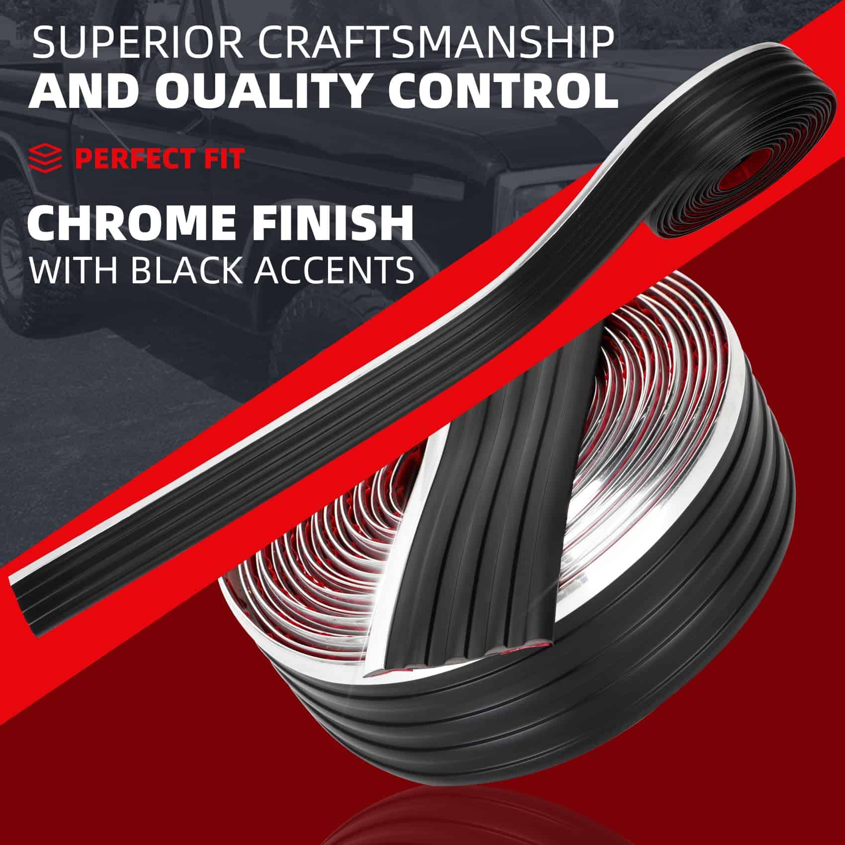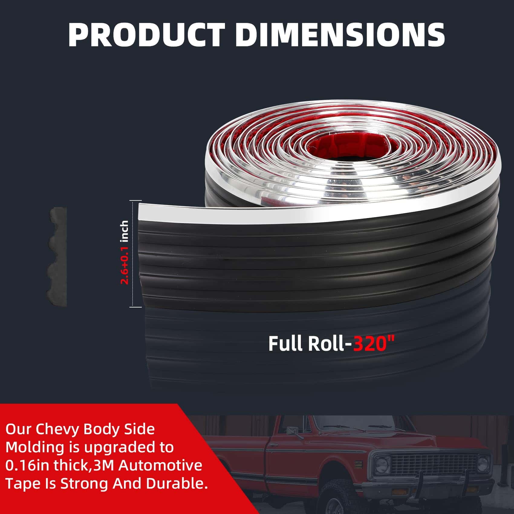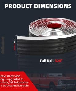 Este conjunto de molduras laterales cromadas es ideal para los modelos de camionetas Chevy y GMC fabricados entre los años 1988 y 1998. Las molduras laterales están diseñadas para adaptarse perfectamente a las curvas del cuerpo del vehículo, mejorando significativamente su aspecto general. Fabricadas con material cromado de alta calidad, estas molduras son resistentes a la oxidación y a la corrosión, lo que las hace más duraderas que las originales. Además, la instalación es muy sencilla gracias a la cinta de doble cara de alta resistencia que se incluye en el conjunto. No se requieren herramientas complicadas ni perforaciones, por lo que el proceso de mejora estética de su camioneta será rápido y sin complicaciones. Por favor, asegúrese de medir su vehículo antes de realizar la compra para garantizar que ha adquirido suficientes molduras laterales. En caso de cualquier duda o problema, nuestro equipo de servicio postventa estará disponible para brindarle asistencia y soluciones rápidas y efectivas. Realice su pedido hoy y mejore la apariencia de su camioneta con estas elegantes molduras laterales cromadas.
