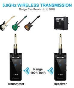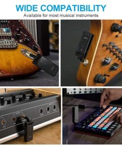 El Sistema Inalámbrico de Guitarra 1Mii ofrece una transmisión de señal cristalina de 24 bits 48kHz de alta calidad, asegurando una fidelidad de sonido impecable. Con una latencia ultra baja de menos de 6.8ms, experimenta cero retraso o pérdida de señal, incluso a una distancia de hasta 100 pies (30 metros). Disfruta de un sonido de alta calidad que restaura fielmente los tonos originales de la guitarra, perfecto para músicos que exigen precisión y fiabilidad en sus interpretaciones. Además, cuenta con una batería de litio recargable de 1000mAh integrada, que ofrece hasta 8 horas de funcionamiento con solo 2 horas de carga. Incluye un cable USB doble para recarga conveniente, garantizando un rendimiento confiable en cada presentación. Este sistema de guitarra inalámbrico es plug and play, simplemente conecta el transmisor a tu guitarra y el receptor a tu amplificador o sistema de sonido, no se requiere configuración. Se empareja automáticamente para una conectividad instantánea, gracias a su diseño plug-and-play. Soporta 4 canales y cuenta con una función conveniente de cambio de canal con una tecla para cambiar sin problemas durante las actuaciones. Esta capacidad permite una transmisión de audio clara y sin interferencias con conexiones uno a uno, asegurando una conectividad confiable y versatilidad para músicos en escenarios o entornos de estudio.