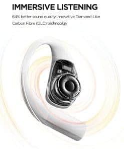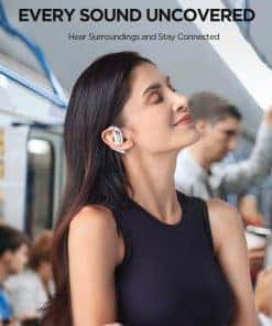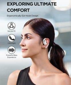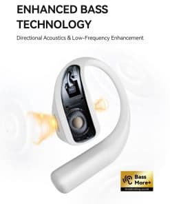 2. Bajos profundos, sonido rico: El algoritmo avanzado de DSP en estos auriculares inalámbricos bluetooth de oído abierto mejora los bajos en tiempo real. Disfruta de un audio potente e inmersivo ya sea que estés escuchando pistas de alta energía o sonidos relajantes.