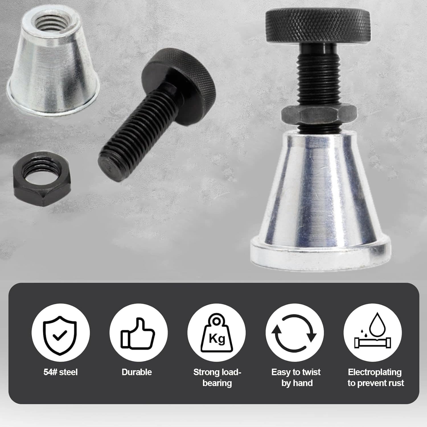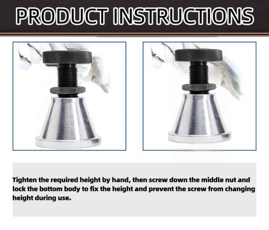 Eleve su taller o instalación industrial con estos versátiles postes de gato de tornillo ajustables. Fabricados con acero duradero 54, pueden soportar cargas pesadas de hasta 5 toneladas, lo que los hace ideales para nivelar y soportar máquinas de fresado, taladrado y procesamiento grandes. El diseño ingenioso le permite girar fácilmente el gato a mano para lograr la altura deseada entre 2.63″ y 3.93″, garantizando precisión y estabilidad. El acabado electro-plated evita la oxidación, asegurando un rendimiento duradero. Con una amplia gama de aplicaciones, estos soportes de gato son imprescindibles para cualquier profesional o entusiasta del bricolaje que busque soluciones de soporte confiables y resistentes. Apriete la tuerca central para bloquear el cuerpo inferior y evitar cambios de altura durante el uso. Actualice su espacio de trabajo hoy con este práctico y robusto juego de 2 o 4 postes de gato de tornillo ajustables.