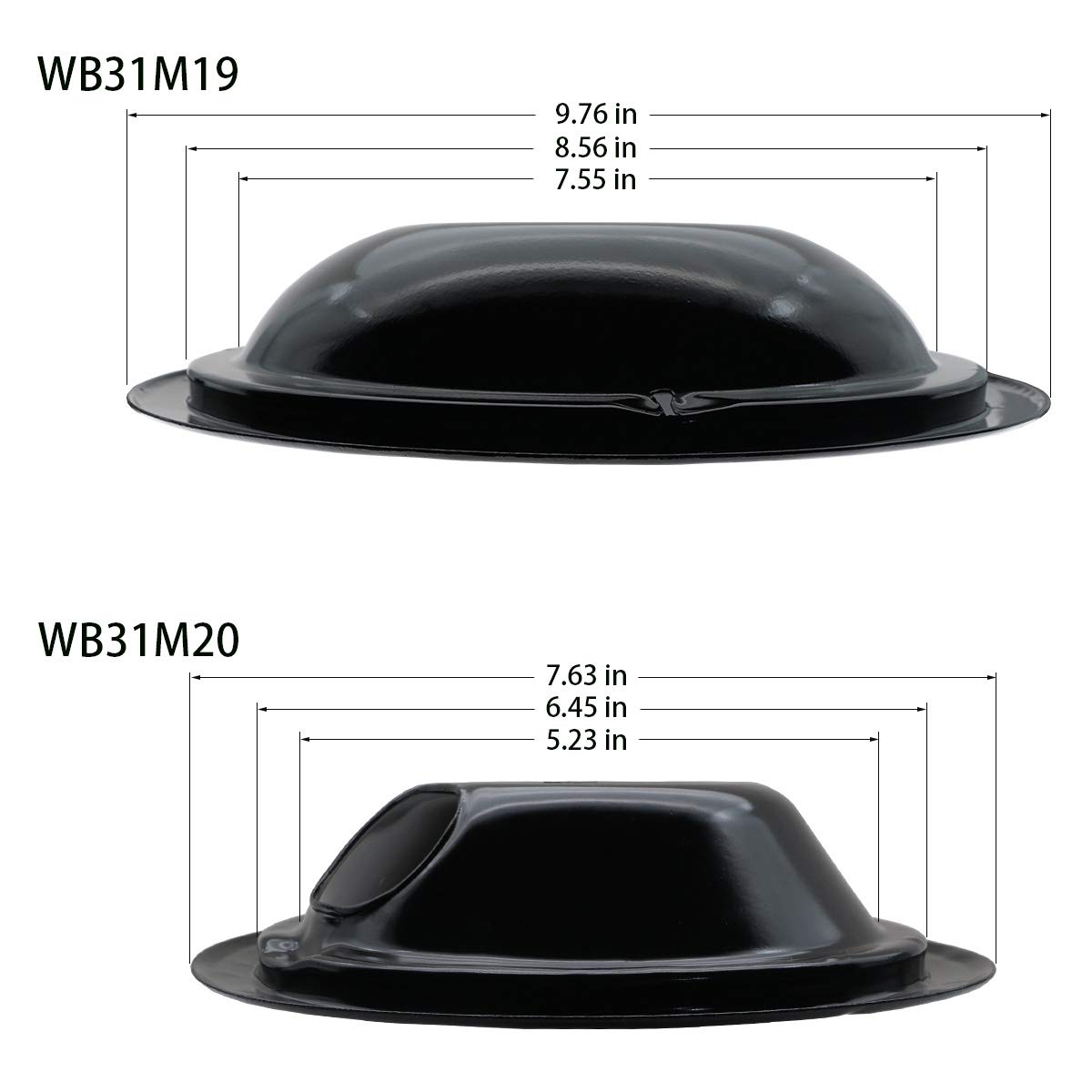 Tazón de bandeja de goteo negro (también llamado bandeja de goteo) para quemador en una estufa eléctrica. El tazón de bandeja de goteo se coloca debajo del elemento calefactor para atrapar goteos o derrames. Son de porcelana negra y tienen una muesca para el soporte del quemador. Diseñados para ser utilizados con quemadores de estilo enchufable. Por favor note: Espere hasta que la superficie esté fría al tacto antes de instalar esta pieza. Reemplazos de tazones de bandeja de goteo: WB31M20 reemplaza a WB31M0020, WB31M20-100PK, WB32X5070, PS244375, AP2028044, EAP244375. WB31M19 reemplaza a WB31M0019, WB31M19-100PK, WB32X5069, AP2028043, PS244373, EAP244373. Funciona con la mayoría de las marcas reconocidas: GE, Hotpoint y RCA. Atención al cliente de Siwdoy: Comprometidos a brindar el mejor servicio al cliente. Si tiene alguna pregunta, no dude en contactarnos. Las marcas y logotipos de GE son marcas registradas de sus respectivos propietarios. Cualquier uso del nombre de marca GE o la designación de modelo para este producto se hace únicamente con fines de demostrar compatibilidad.