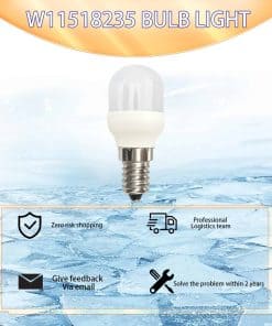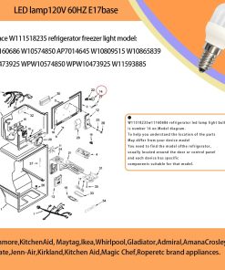 Applicable to específico modelos de refrigeradores 120V 2W 60HZ 200lm 32MA. This w11518235 bombilla de congelador replace AP7014645, W10473925, W11593885, W10809515, W10865839 WPW10574850, WPW10473925 parte Compatible con Whirlpool, Maytag, KitchenAid, Jenn-Air, Amana, Magic Chef, Admiral, Norge, Roper, y la marca Kenmore / Sears electrodomésticos Adecuado para modelos específicos de refrigeradores.