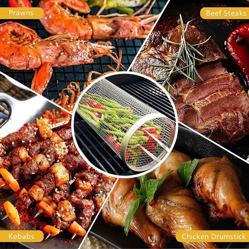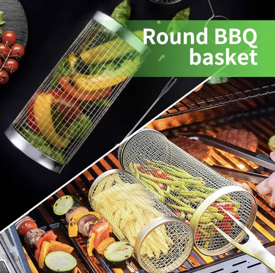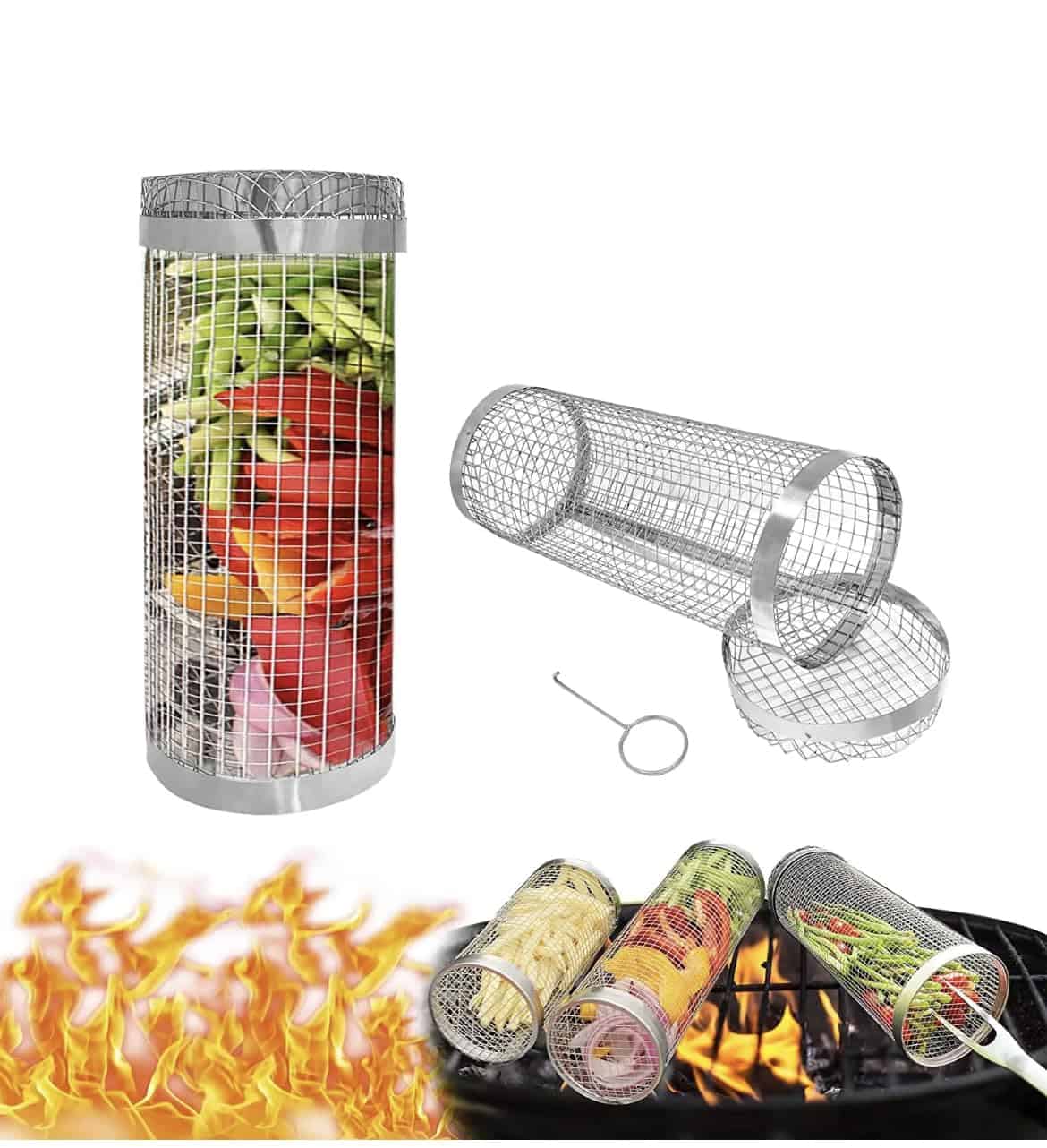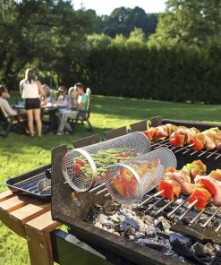 2 Canastas de Parrilla Rodantes Grandes para Camping BBQ o