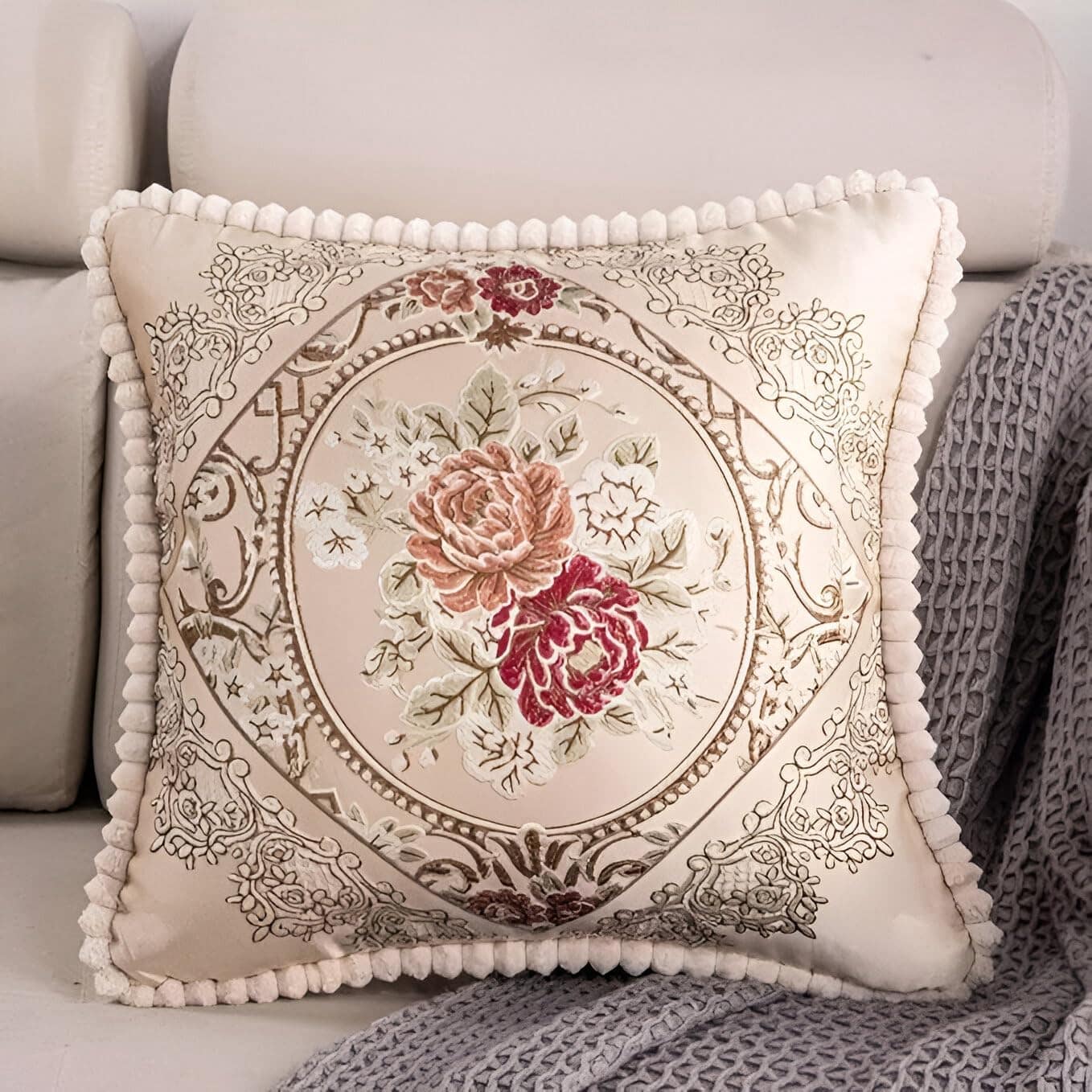 2 Fundas de Almohada Decorativas Europeas -Crema Beige Rosa