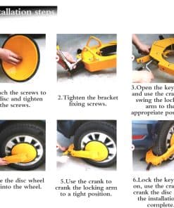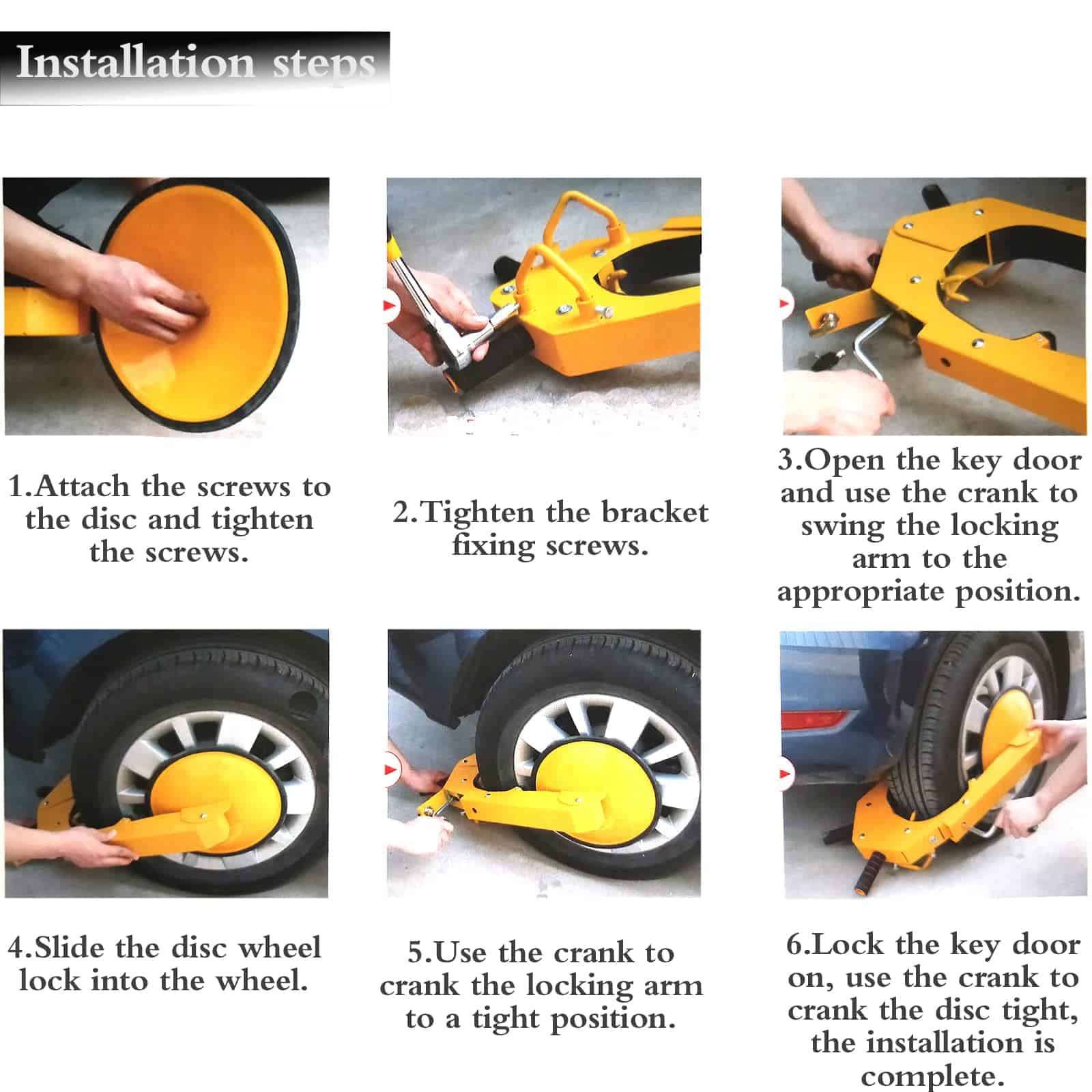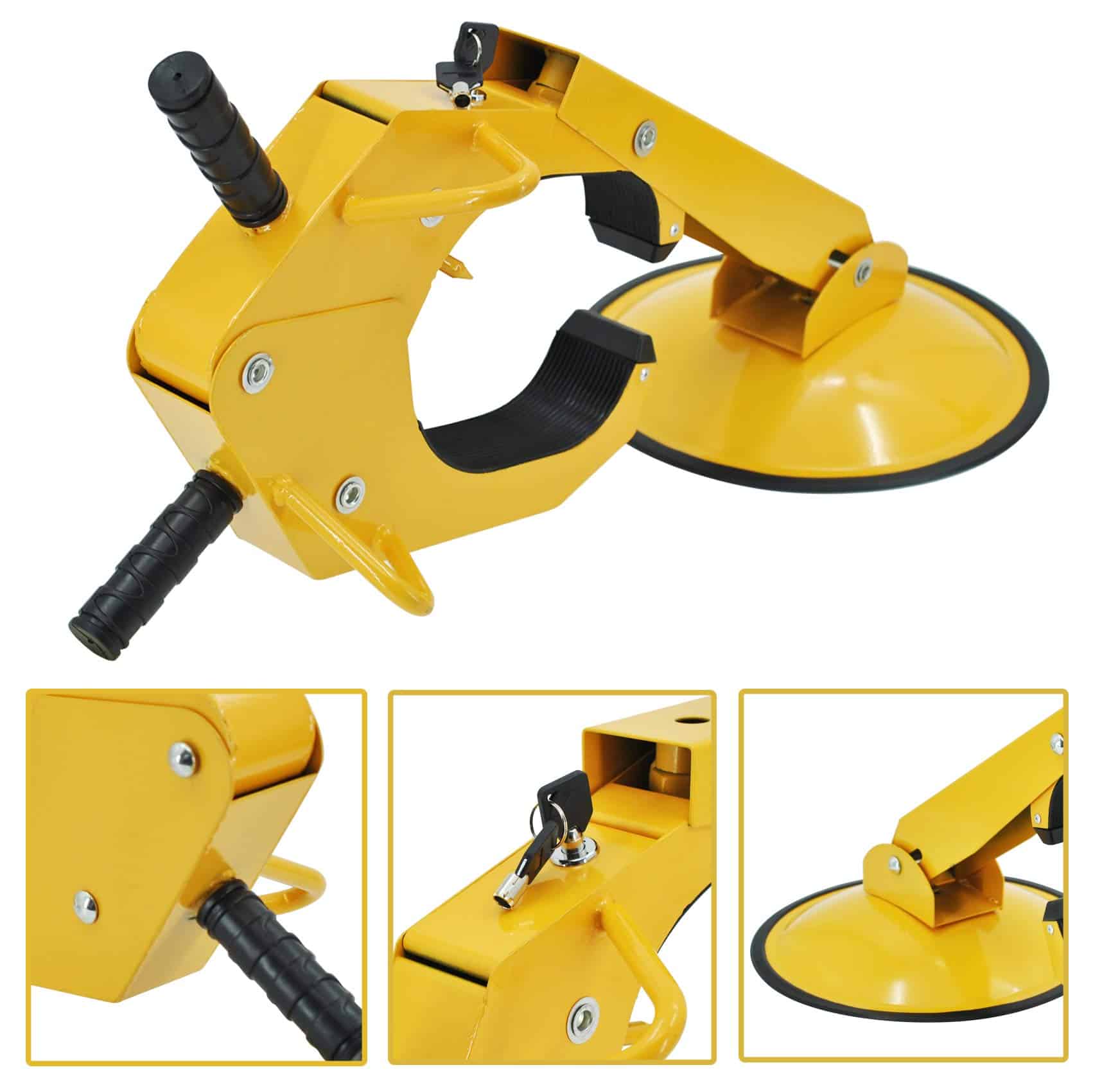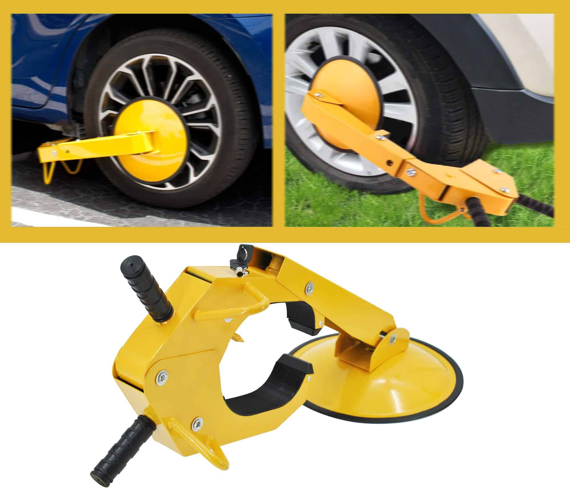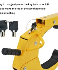 Diseñado para adaptarse fácilmente a diferentes tamaños de llantas y neumáticos, este candado de neumático puede detener eficazmente que su vehículo se mueva o gire cuando está estacionado.