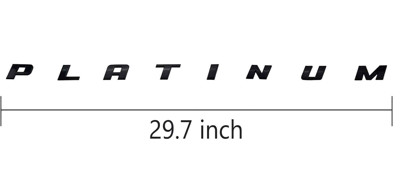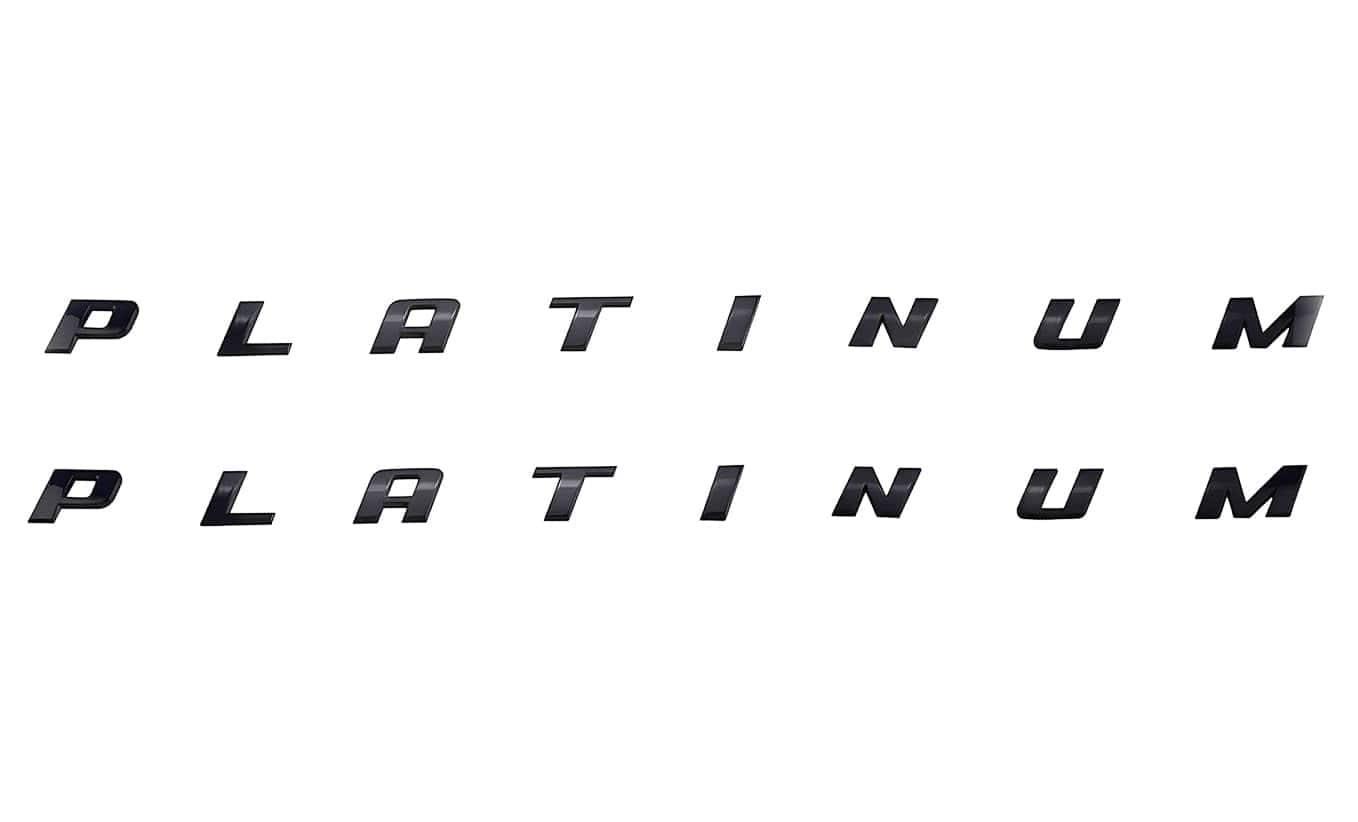 2 Pack Emblemas Laterales PLATINUM 3D Letras con Adhesivos Pegatinas Nombre (Negro Brillante). Hecho con material de ABS de alta calidad, este emblema está diseñado para durar años, siendo resistente a la intemperie y autoadhesivo. El paquete incluye 2 unidades para ambos lados de su vehículo. Su diseño elegante añadirá un toque de estilo a su automóvil.