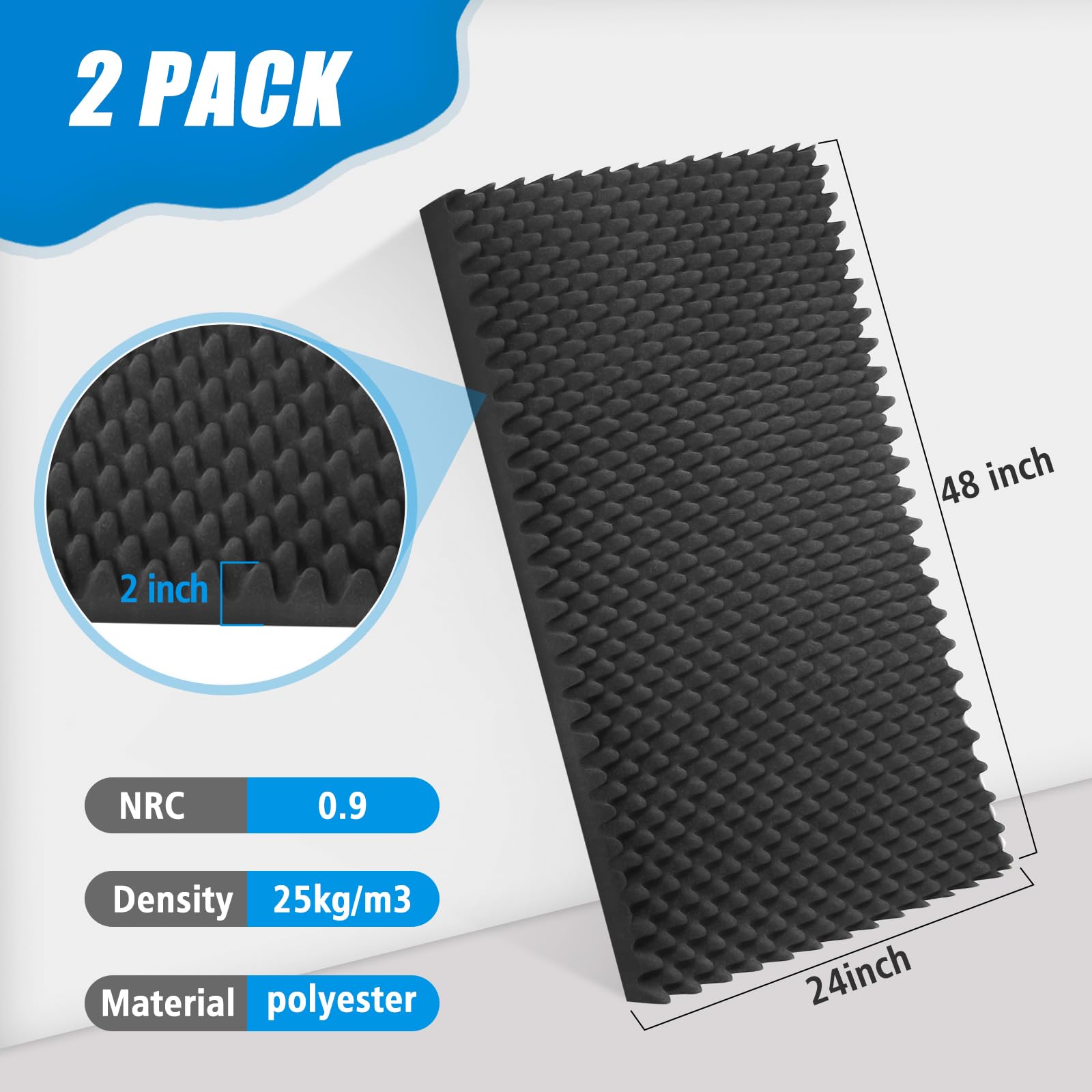 2 Pack Paneles Acústicos, 48X24X2 Pulgadas Paneles de