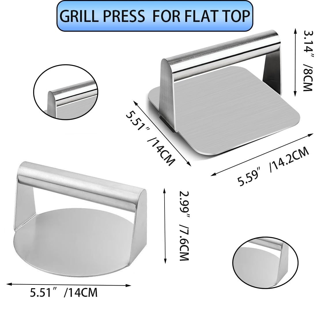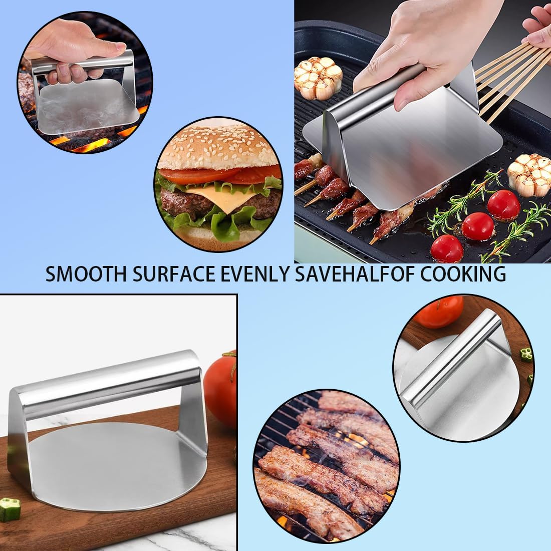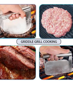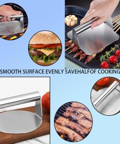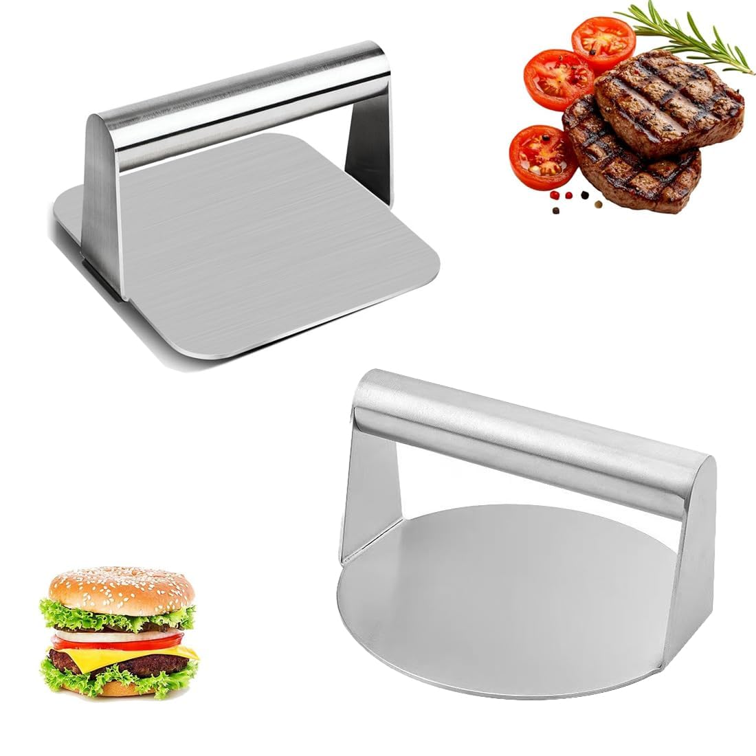 Cada kit incluye un aplastador de hamburguesas redondo y un aplastador de hamburguesas cuadrado, ideal para tus diversas necesidades. Estos fabricantes de hamburguesas sostienen fácilmente la carne en la parrilla, garantizando una cocción perfecta en todo momento.