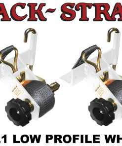 2 Pack, Rack-Strap RSL1, Embalaje en caja, Soporte de montaje en ángulo recto de perfil bajo, Marco en polvo blanco recubierto, Hardware de montaje incluido. Piezas de repuesto: kit de correa RS10, perilla y tuerca RS11, varilla de ajuste RS12. RESISTENCIA A LA ROTURA: 1500 lb || LÍMITE DE CARGA DE TRABAJO: 500 lb
