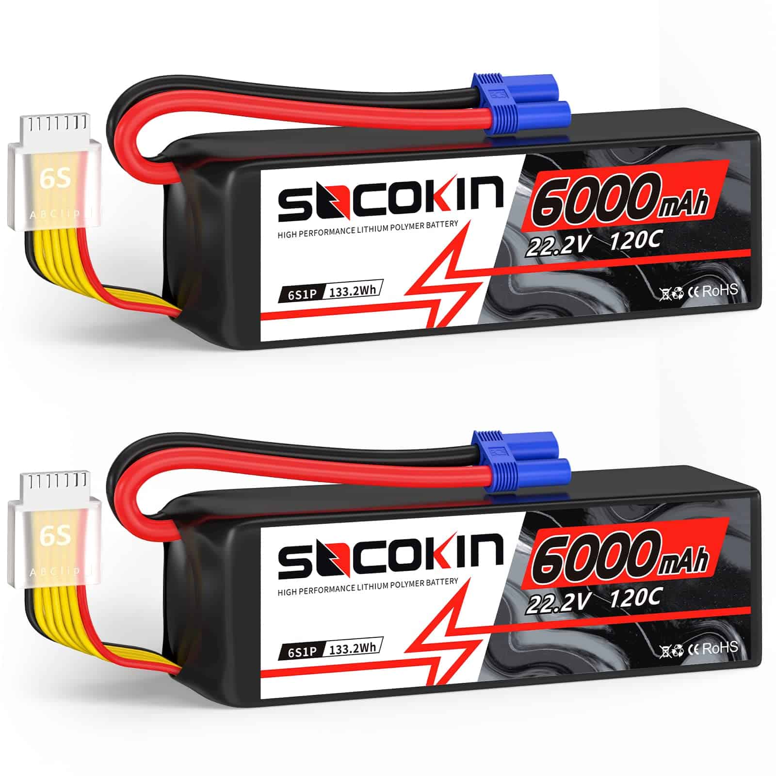 2 Packs de Batería Lipo 6S 22.2V 120C 6000mAh con Estuche