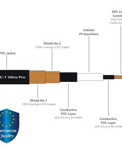 Hecho a medida 2 unidades – Gotham GAC-1 Ultra Pro – 12 Pulgadas Premium, Bajo-Capacitancia (21 pf/F) Guitar Bass Effects Instrument Patch cables – El Gotham GAC-1 Ultra Pro cuenta con el exclusivo doble blindaje de Reussen de Gotham (2 blindajes de cobre en espiral entrelazados al 100%) y dos capas de PVC conductoras separadas e aislamiento de PE Celular (casi todos los cables de parche en el mercado tienen un solo blindaje y una sola capa de PVC conductora) – terminado con conectores Premium Oro Plateados de 1 pulgada (6.35mm) de Ángulo Recto, tipo Pancake TS. IMPORTANTE, TEN EN CUENTA: La longitud del cable se mide de punta a punta de cada conector, este es el estándar de la industria para medir cables de parche (los detalles de la medición se muestran claramente en una de las imágenes de la galería de imágenes para aclarar el proceso de medición. Hay muchas imágenes en la galería, por favor haz clic en la imagen principal para abrir toda la galería). Por favor, también verifica las dimensiones del conector ya que algunos conectores pueden ser demasiado anchos para tomas que están muy cerca entre sí.