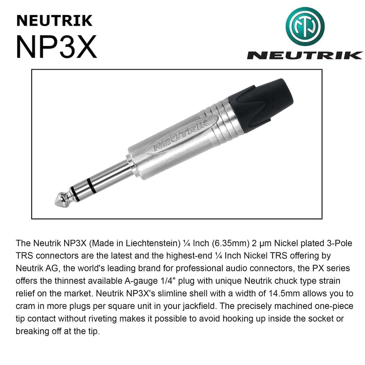 Cable de parche personalizado hecho por WORLDS BEST CABLES (WBC). Este cable está hecho utilizando cable Mogami 2549 (Negro) y conectores estéreo Neutrik NP3X Macho TRS de pulgada. En WBC siempre hacemos ensamblajes de cable personalizados de clase mundial utilizando muchas de las marcas líderes de cable y conectores. Si no puedes encontrar la longitud y tipo de cable que buscas, no dudes en contactarnos, nos esforzaremos por armar el cable requerido para ti.