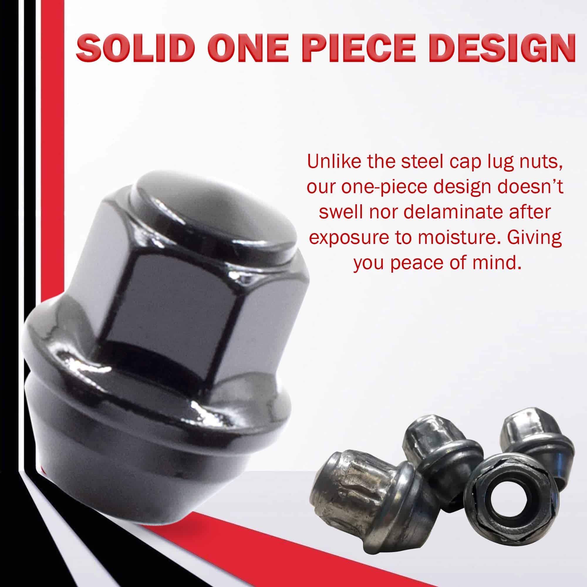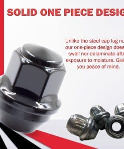 3. Diseñado en EE. UU.: Diseño sólido de una sola pieza que reemplaza el diseño original de dos piezas para una mayor confiabilidad. A diferencia de las tuercas cónicas con tapa de acero, nuestro diseño de una sola pieza no se hincha ni se delamina después de la exposición a la humedad. Dándole tranquilidad. Cumple o supera los estándares de fábrica OEM.