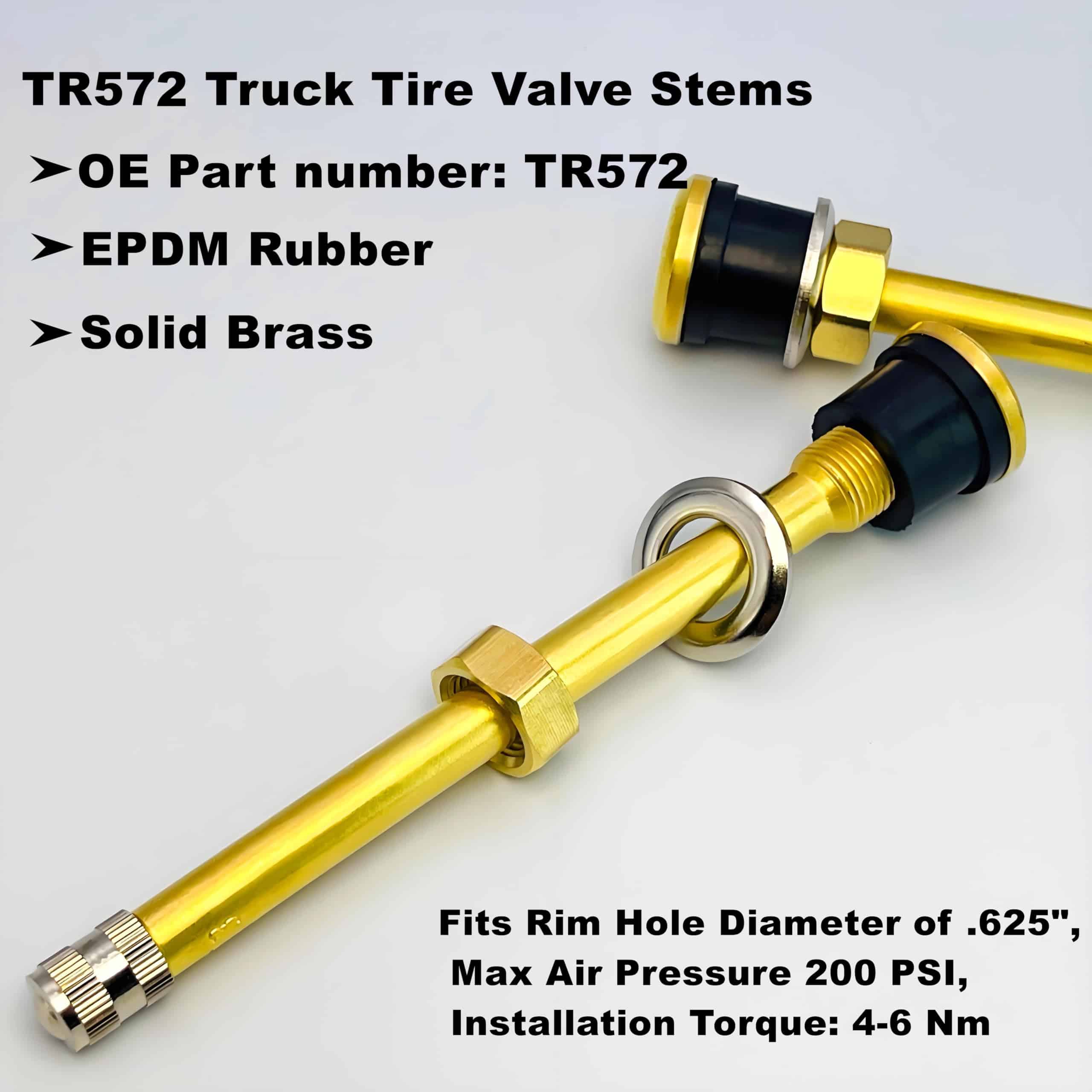 20 Piezas TR572 Válvulas de vástago para llantas de camión, construcción de latón para durabilidad y longevidad, garantizando un rendimiento duradero, y el número de parte OEM de reemplazo es TR572. Presión de aire máxima 200 psi. Incluido en el paquete: 20 piezas / caja.