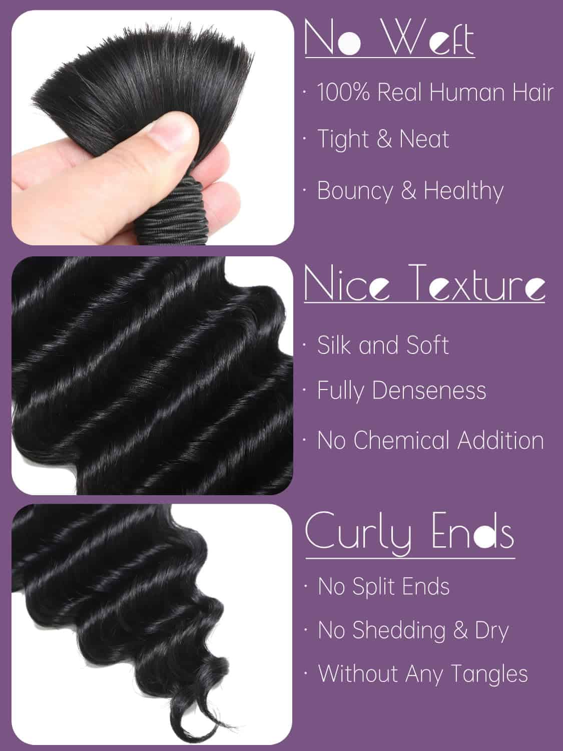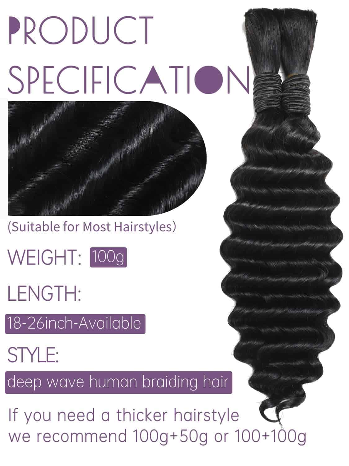 Cabello para trenzar de 20 pulgadas y 100g, 2 paquetes de cabello humano para trenzar boho sin trama de onda profunda sin procesar para trenzar. El cabello humano se compone de cabello humano virgen brasileño sin procesar, cortado de mujeres jóvenes y saludables. El cabello para trenzas micro se puede blanquear, teñir, preestirar los extremos suaves, sin enredos y sin derrames. Después de ser trenzado, el cabello para trenzar humano puede durar varios meses. El cabello para trenzar no tiene trama y todas las cutículas están intactas y alineadas en la misma dirección, adecuado para una variedad de estilos de trenzado. Sin productos químicos, cien por ciento cabello humano para trenzar limpio y suave. Se puede blanquear, teñir, rizar y peinar.