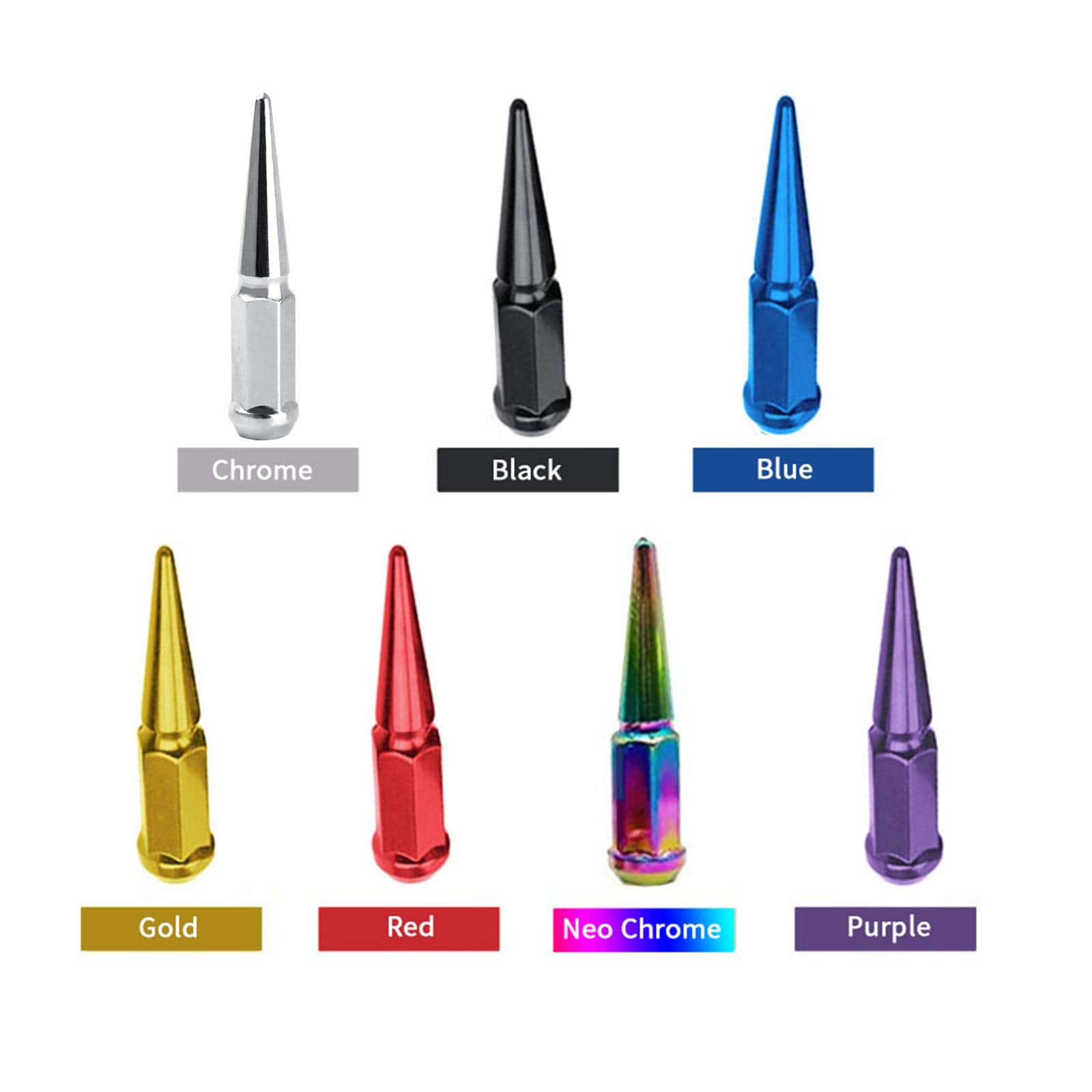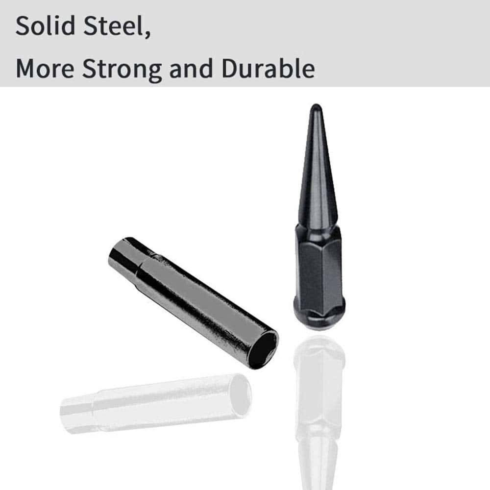 El acabado en este Tornillo de Rueda con Puntas se logra a través de varias fases diferentes. Como acero de carbono forjado en frío con mayor rigidez a través del tratamiento térmico. Esta es la forma correcta de terminar una rueda. Tienen un acabado hermoso con un brillo superior debido a la capa adicional de laca transparente